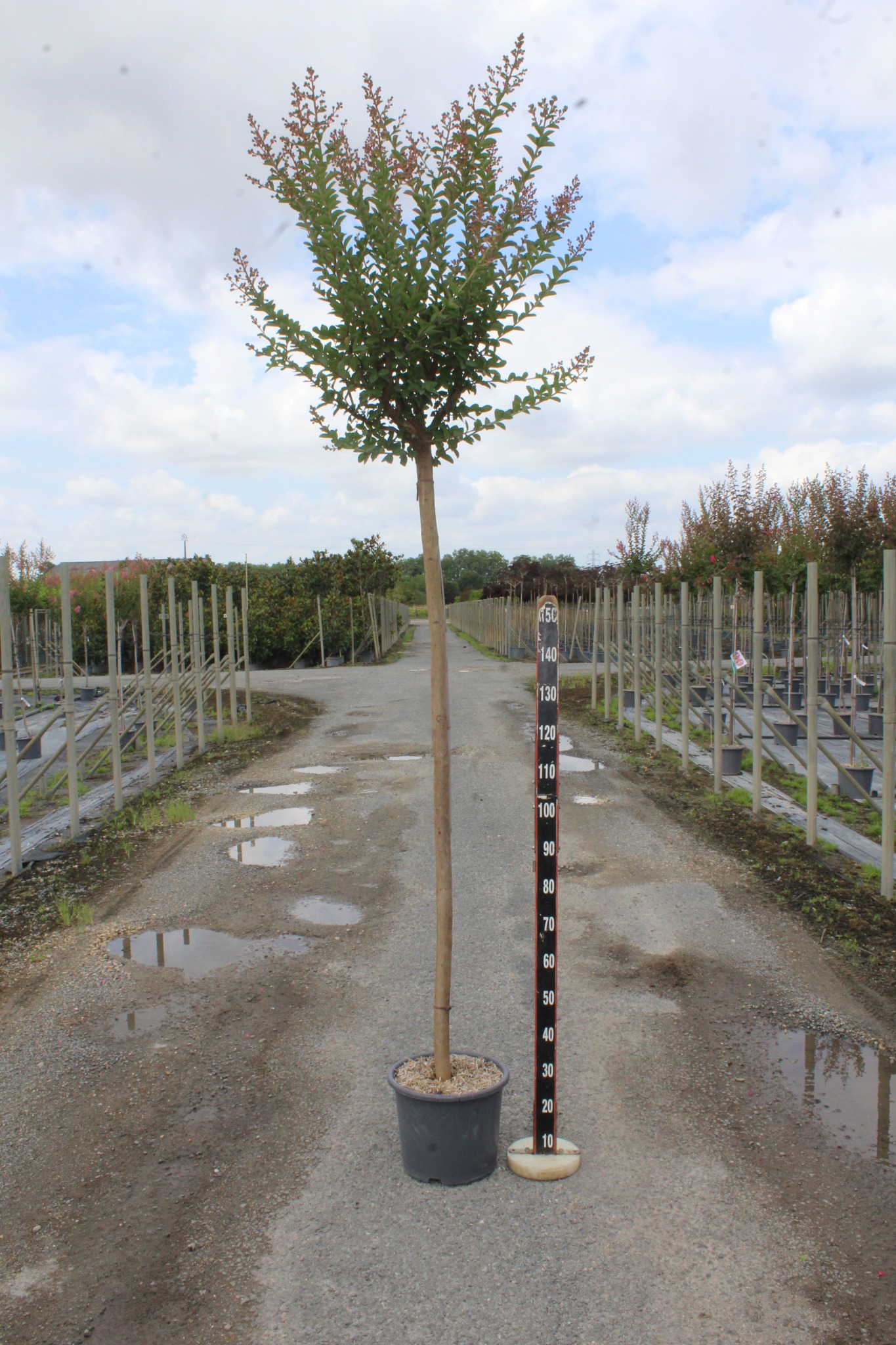 Les trois premières années, un arrosage régulier et profond en juillet et août est vital. Une fois adulte, il résiste bien à la sécheresse, mais un manque d'eau prolongé en pleine canicule peut freiner sa floraison.
