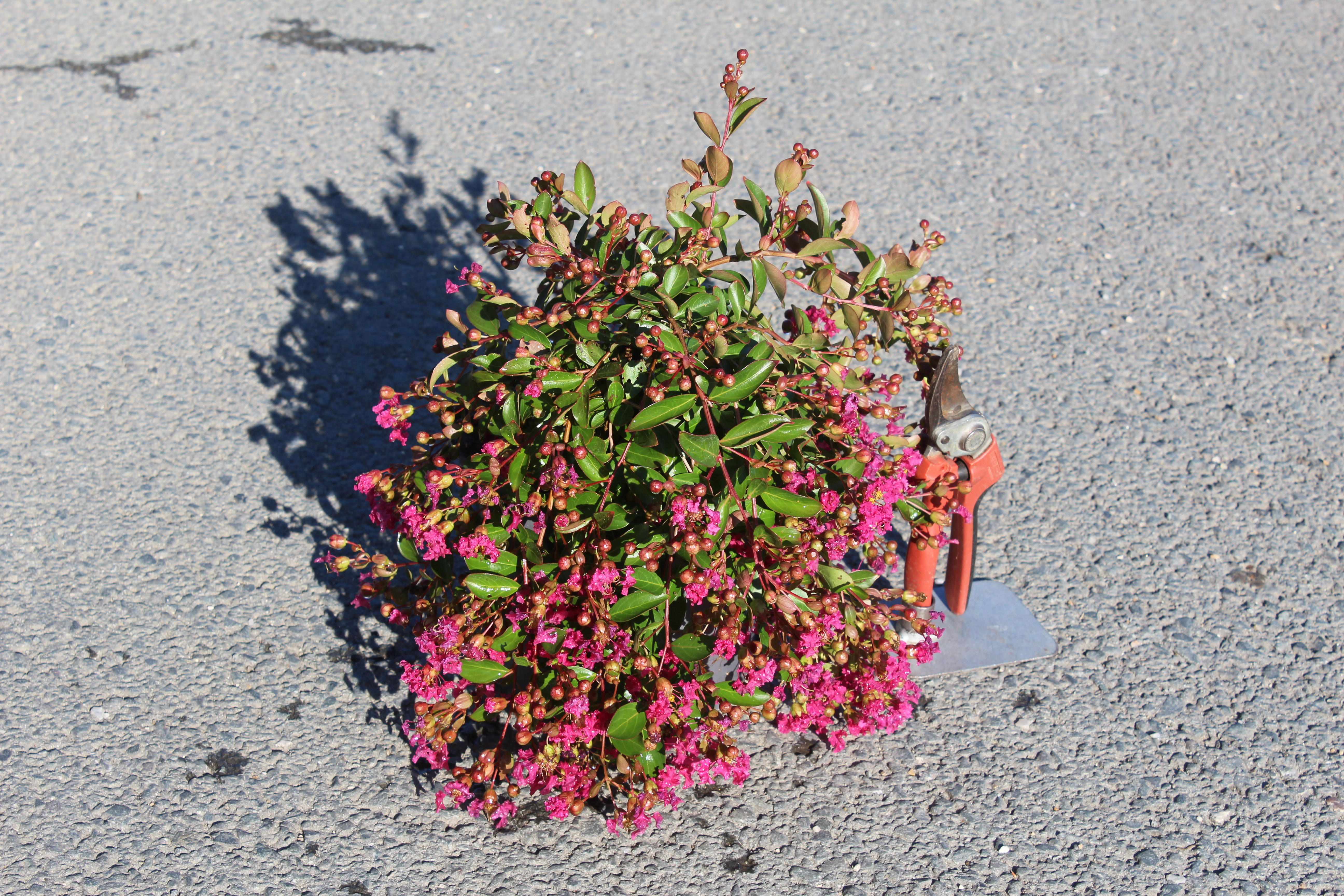 Contrairement aux arbres que l'on taille sévèrement, le 'Mimi Fuchsia' se taille doucement. En mars, rabattez les brindilles de l'année précédente d'environ deux tiers pour garder un port compact et stimuler les nouvelles pousses qui porteront les fleurs.