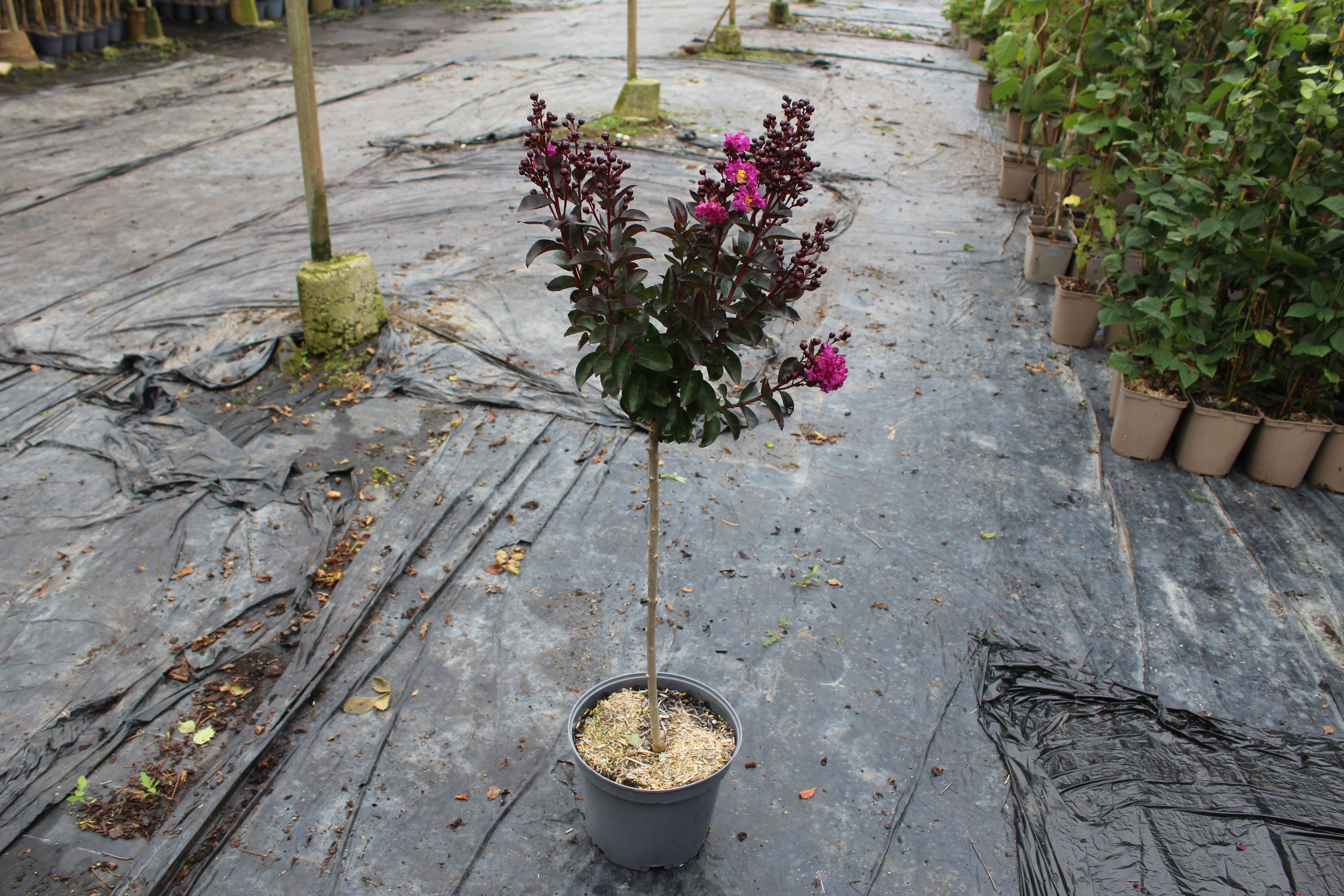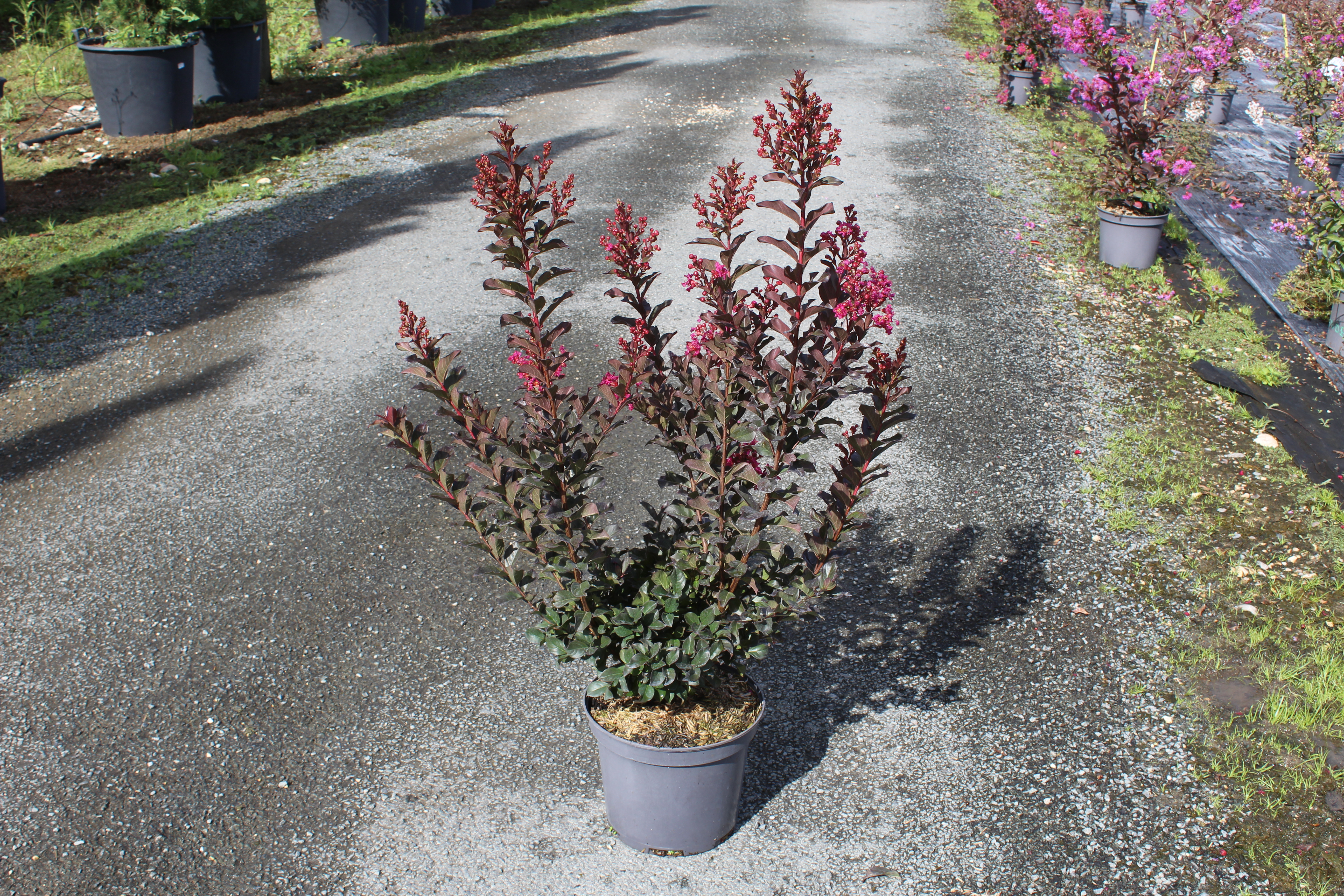 Le Lilas des indes 'Plum Magic' est un arbuste dressé, arrondi et compact à maturité, connu pour ses fleurs rose fuchsia éclatantes qui apparaissent dès juillet et reviennent plusieurs fois en saison. Son feuillage pourpre intense et ses pousses prune en font une plante aussi décorative que facile à entretenir. Idéal en massif, haie basse ou pot.