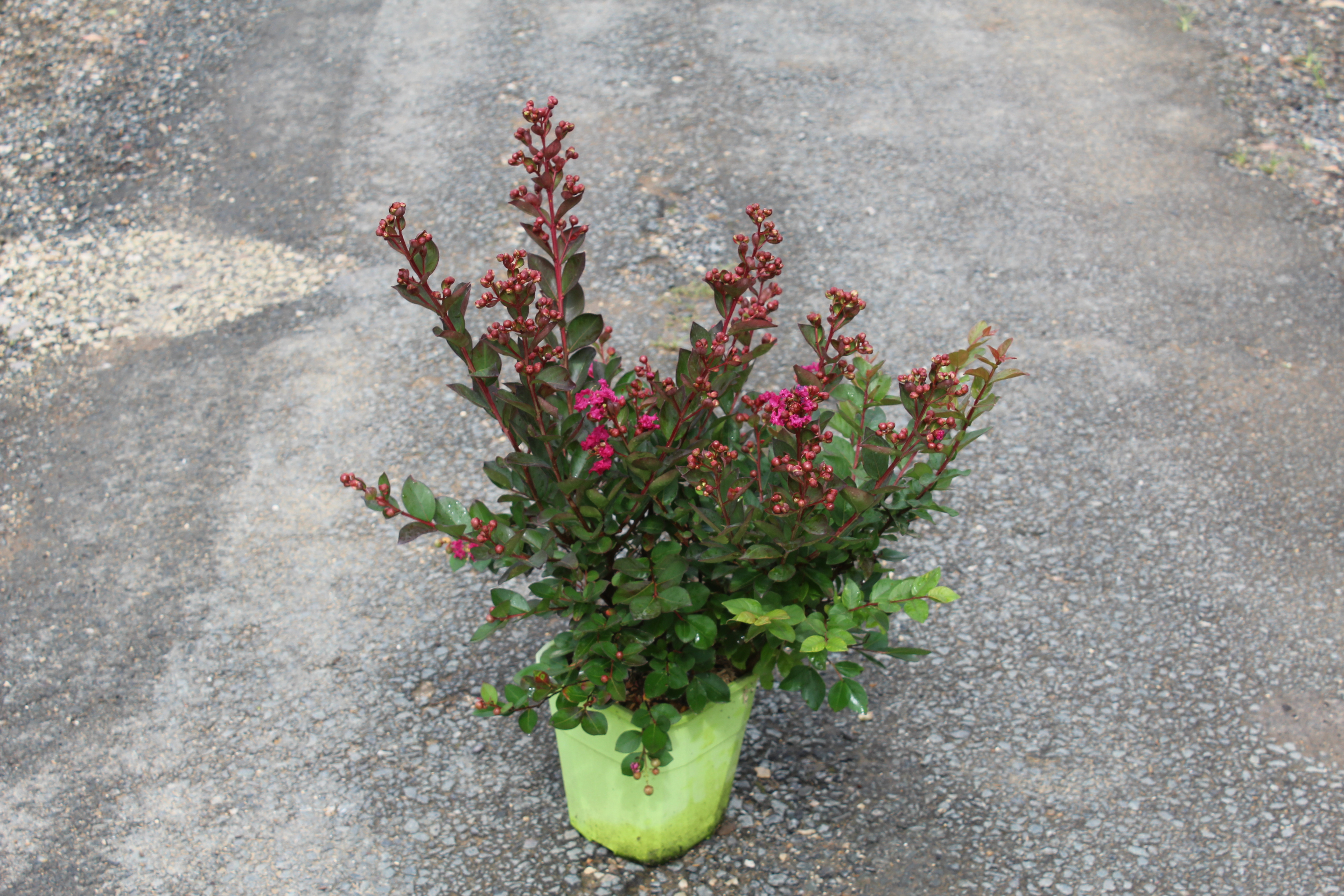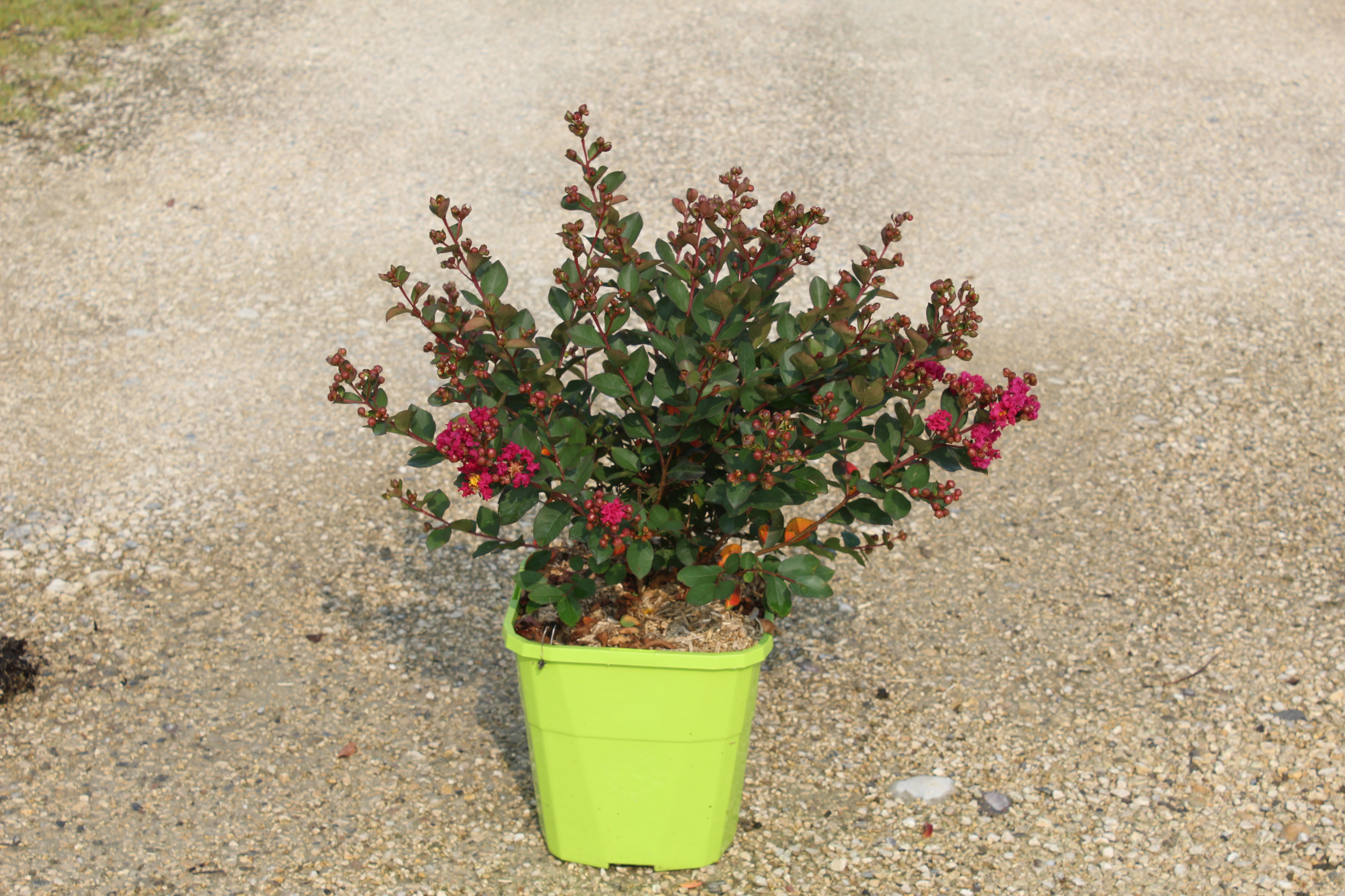 Le Lilas des Indes 'Red Red Wine' (Lagerstroemia indica) est une variété séduisante qui porte bien son nom. Elle offre une floraison d'un rouge vin profond et velouté, dont l'intensité ne faiblit pas sous le soleil estival. Ses grappes de fleurs (thyrses) frisottées créent un contraste saisissant avec son feuillage vert sombre.
