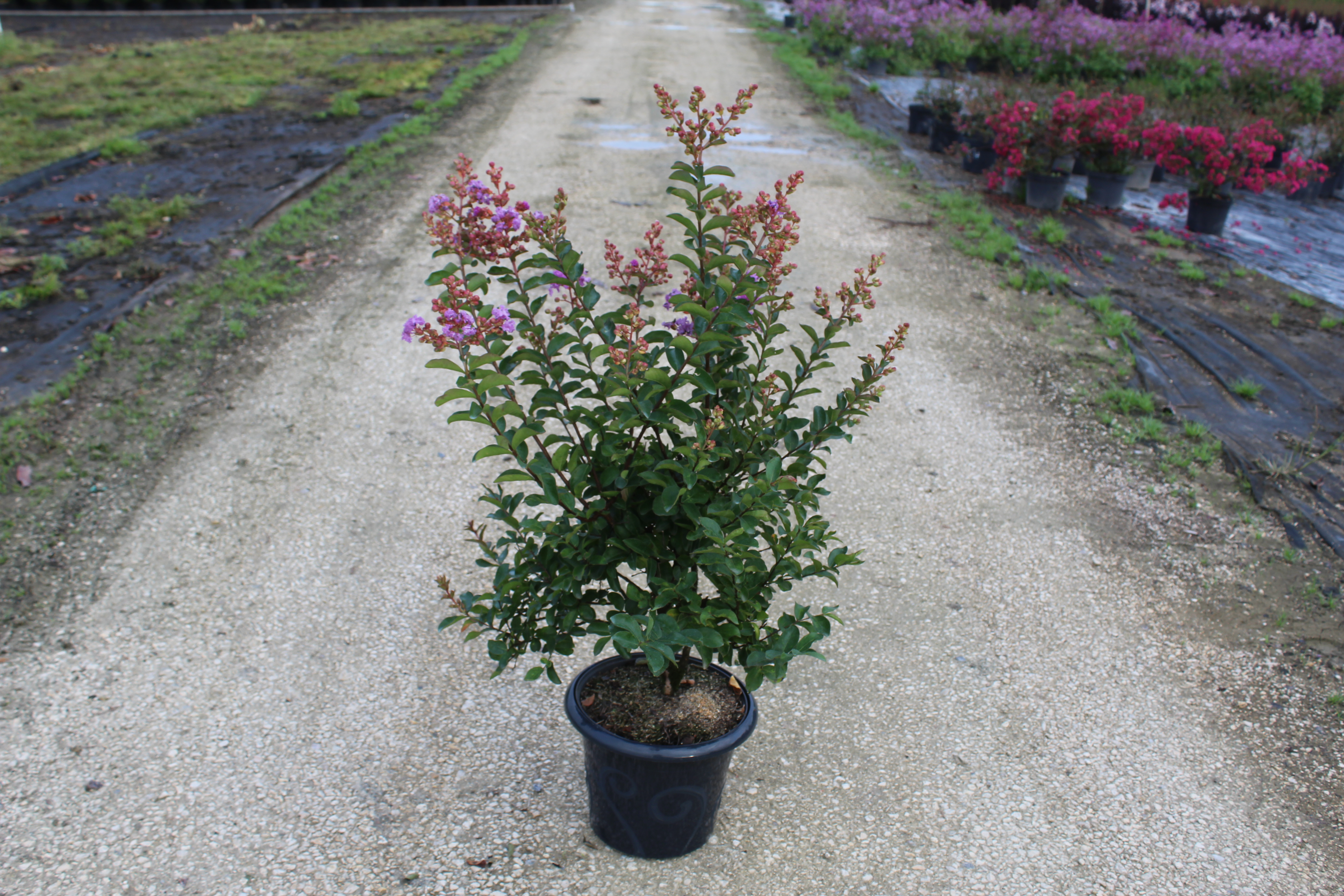 Le Lilas des indes 'Sweet lavender' est un arbuste de taille moyenne, atteignant généralement entre 1,5 et 2,5 mètres de hauteur. Ses feuilles sont légèrement vernissées, de forme ovale, ce qui donne une belle texture au feuillage. La couleur des feuilles varie du vert clair au vert foncé, apportant une touche de fraîcheur au jardin tout au long de l'année. Les fleurs apparaissent en grappes, créant un spectacle visuel époustouflant pendant la période de floraison qui s'étend de l'été jusqu'à l'automne.