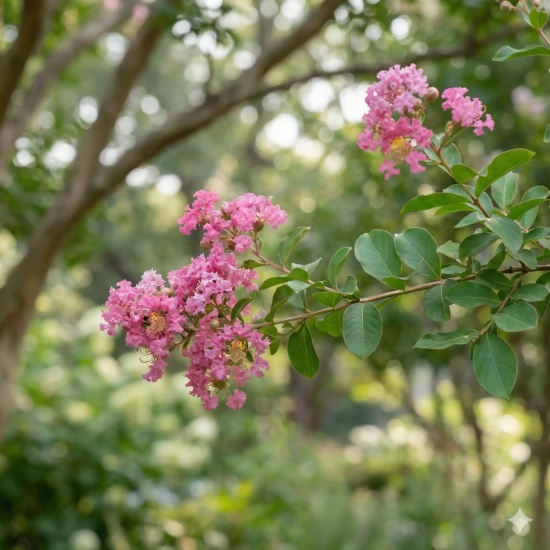 Le Lilas des Indes 'Terrasse Rose' (Lagerstroemia indica) est une variété compacte spécialement sélectionnée pour illuminer les balcons, les patios et les petits jardins. De juillet à septembre, il offre une floraison abondante et délicate, se couvrant de généreux thyrses (grappes) d'un rose pastel lumineux.