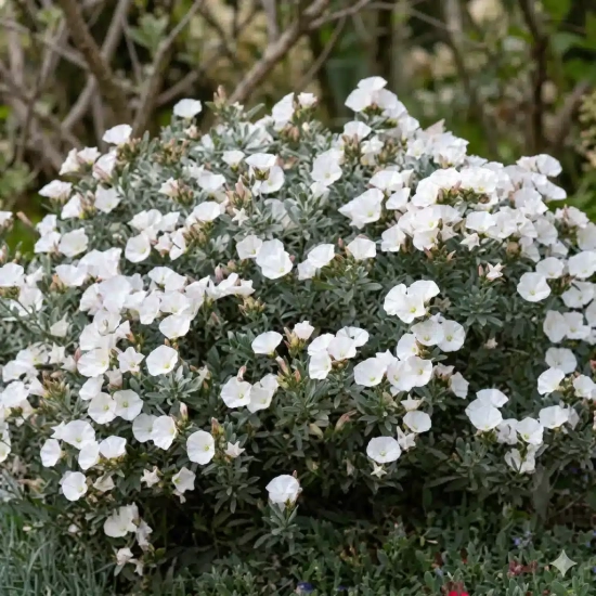 Le Liseron argenté est la plante rêvée pour les jardins sans arrosage et les zones écrasées de chaleur estivale.