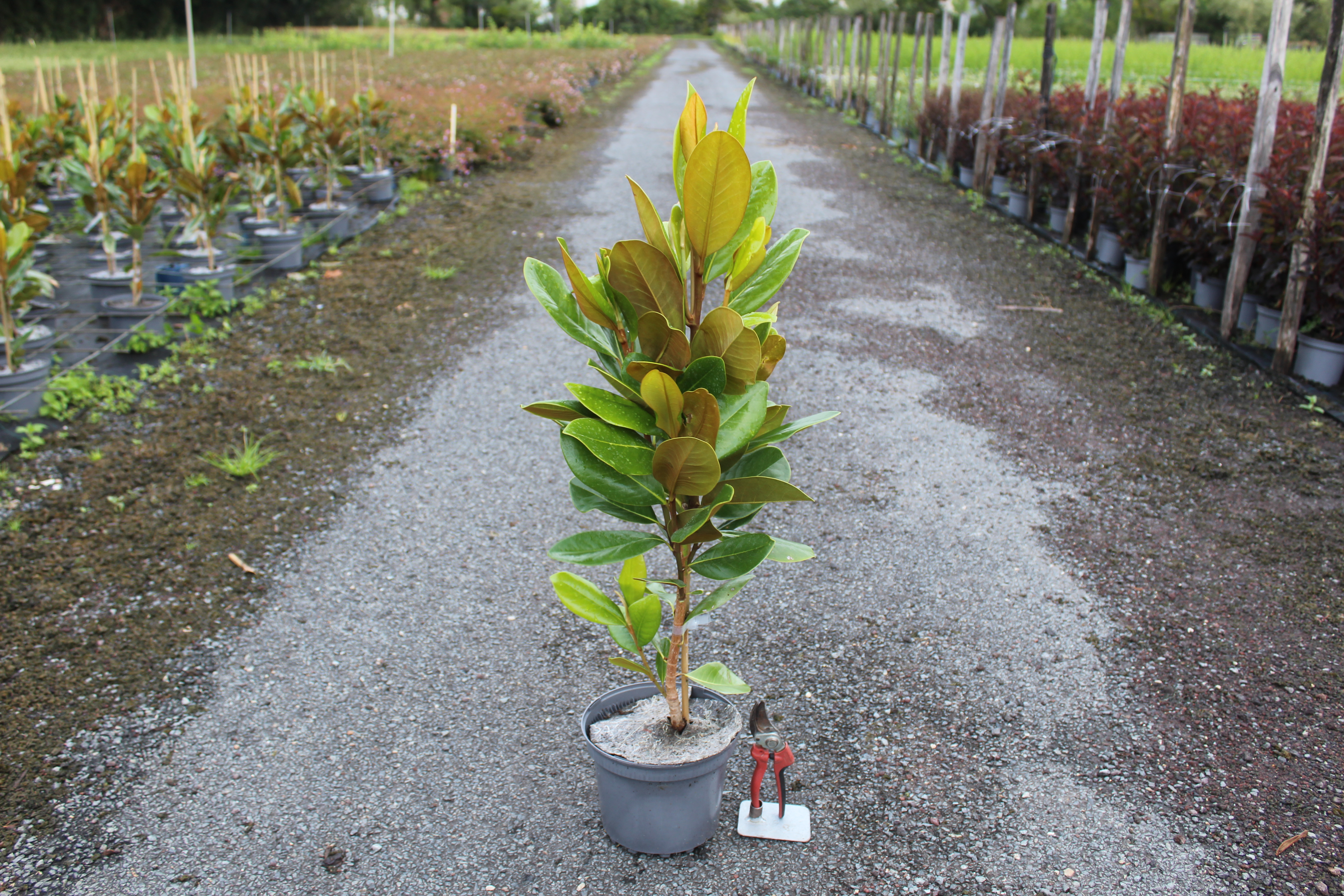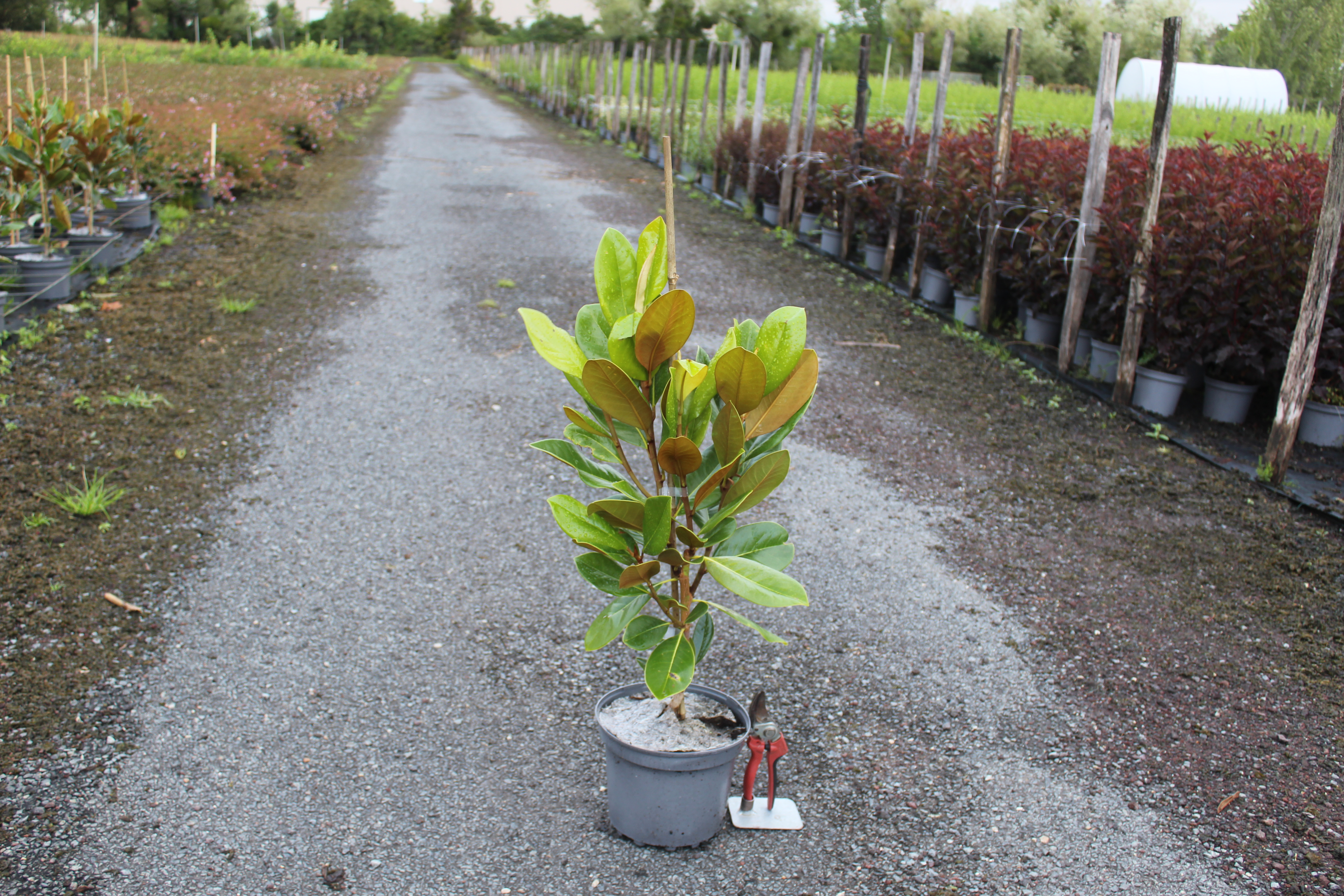 L'entretien du Magnolia à grandes fleurs 'Francois treyve' est relativement simple, mais quelques précautions doivent être prises. Les arrosages réguliers sont nécessaires, surtout pendant les périodes sèches, pour garder le sol humide mais pas détrempé. Une fertilisation annuelle au printemps avec un engrais équilibré peut également être bénéfique pour stimuler la croissance et améliorer la floraison. Concernant la taille, il est recommandé de ne tailler que les branches mortes ou endommagées, car ce magnolia a un port naturel élégant.