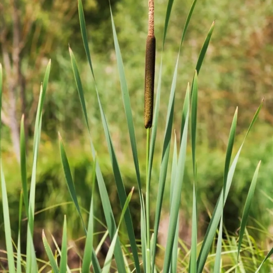 La Massette à larges feuilles, ou Typha latifolia, est une plante aquatique remarquable qui se distingue par ses grandes feuilles en forme de fuseau et sa capacité à s'adapter à divers environnements humides. Cette plante, originaire d'Europe et d'Amérique du Nord, est souvent observée dans les marais, les rivières et les lacs, où elle constitue un habitat essentiel pour de nombreuses espèces animales. Les feuilles de la Massette à larges feuilles peuvent atteindre jusqu'à 2 mètres de hauteur et sont d'un vert vif, offrant une belle couleur et une apparence élégante à tout paysage aquatique.