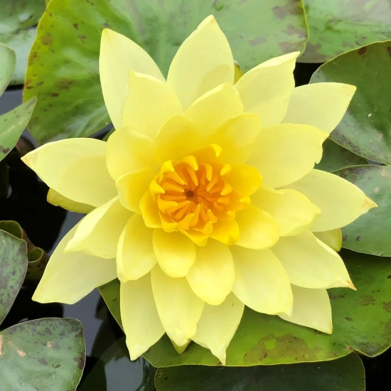 Pour planter votre Nénuphar 'Moorei', choisissez un emplacement dans un étang ou un bassin, de préférence à l'ombre légère ou au soleil partiel, garantissant 4 à 6 heures de lumière par jour. La meilleure période pour la mise en place est de mi-mai à fin juin. Il est essentiel d’assurer un sol argileux ou limoneux, riche en matière organique et toujours bien drainé, avec une profondeur d'eau d'environ 30 à 60 cm pour garantir son développement. Espacer les plants de 1 à 2 mètres s'ils sont isolés, ou 4 à 5 plants par m² dans un massif aquatique.