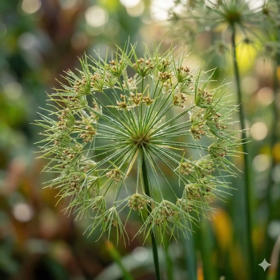 Le Papyrus 'Cleopatra', avec son allure majestueuse et son port érigé, constitue un magnifique brise-vue ou écran végétal. Vous pouvez l'utiliser en isolation, dans des groupes, ou pour embellir des massifs près de l'eau. C'est également un excellent choix pour des jardins méditerranéens ou aquatiques, apportant une ambiance exotique et une végétation luxuriante.