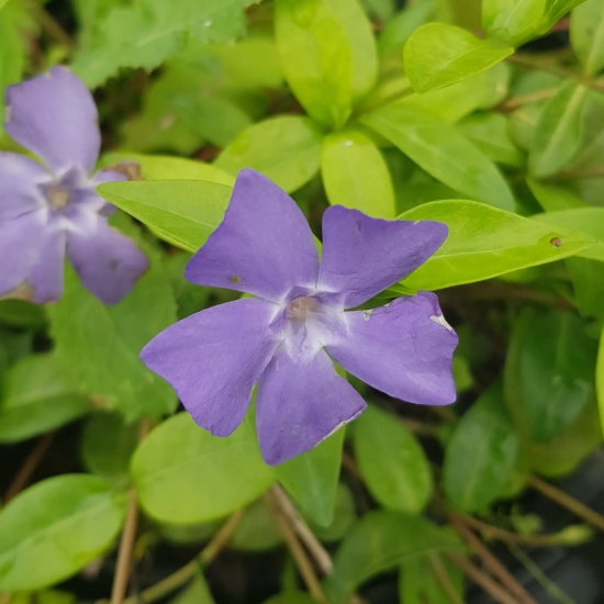 La Vinca minor, plus connue sous le nom de Petite Pervenche, est une plante vivace tapissante d'une efficacité redoutable pour coloniser les zones difficiles du jardin. Elle se distingue par son feuillage vernissé, persistant et vert sombre, qui reste impeccable tout l'hiver. Dès le mois d'avril, elle se couvre d'une multitude de fleurs étoilées d'un bleu violacé intense, apportant une lumière bienvenue sous le couvert des arbres ou sur les talus ombragés.