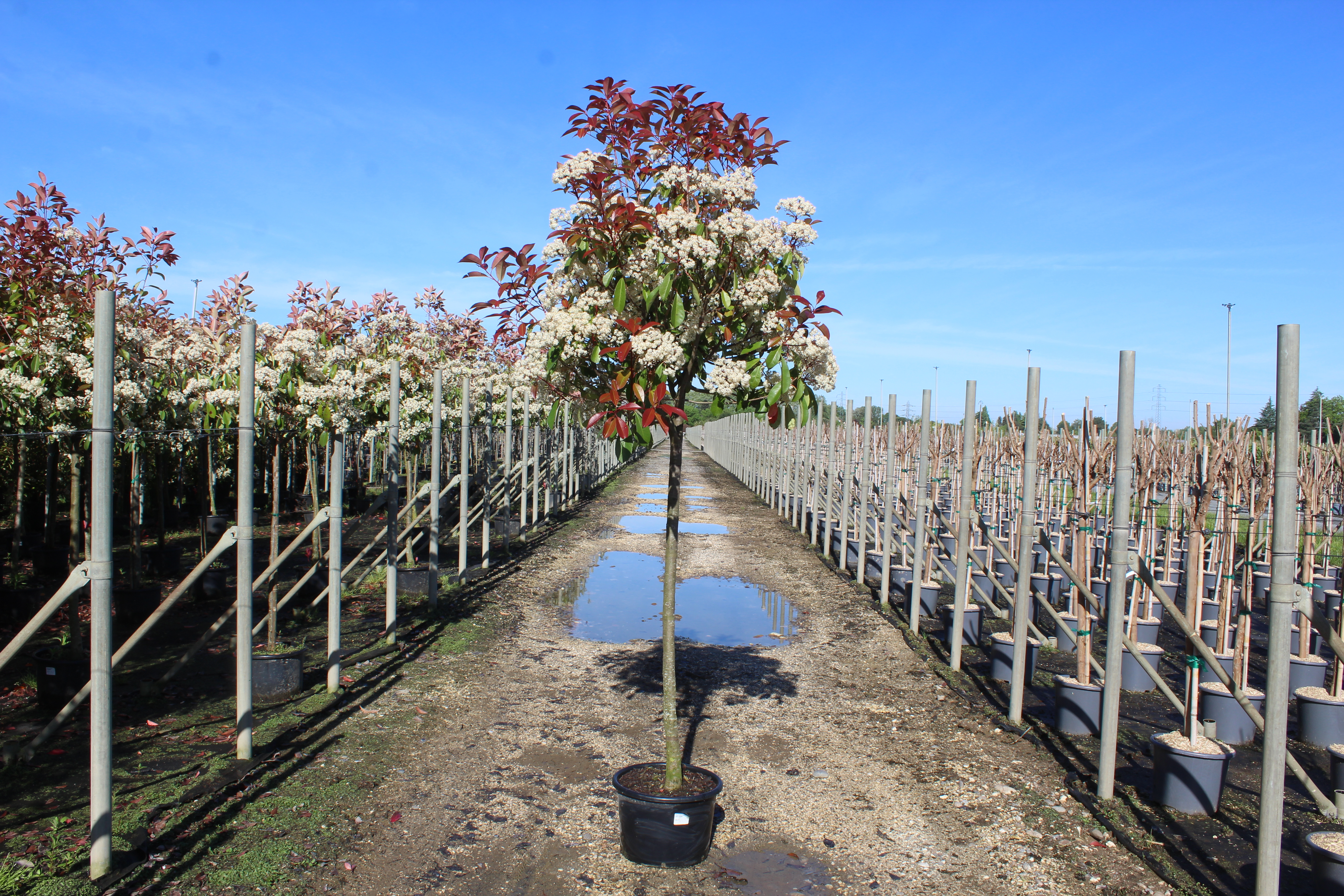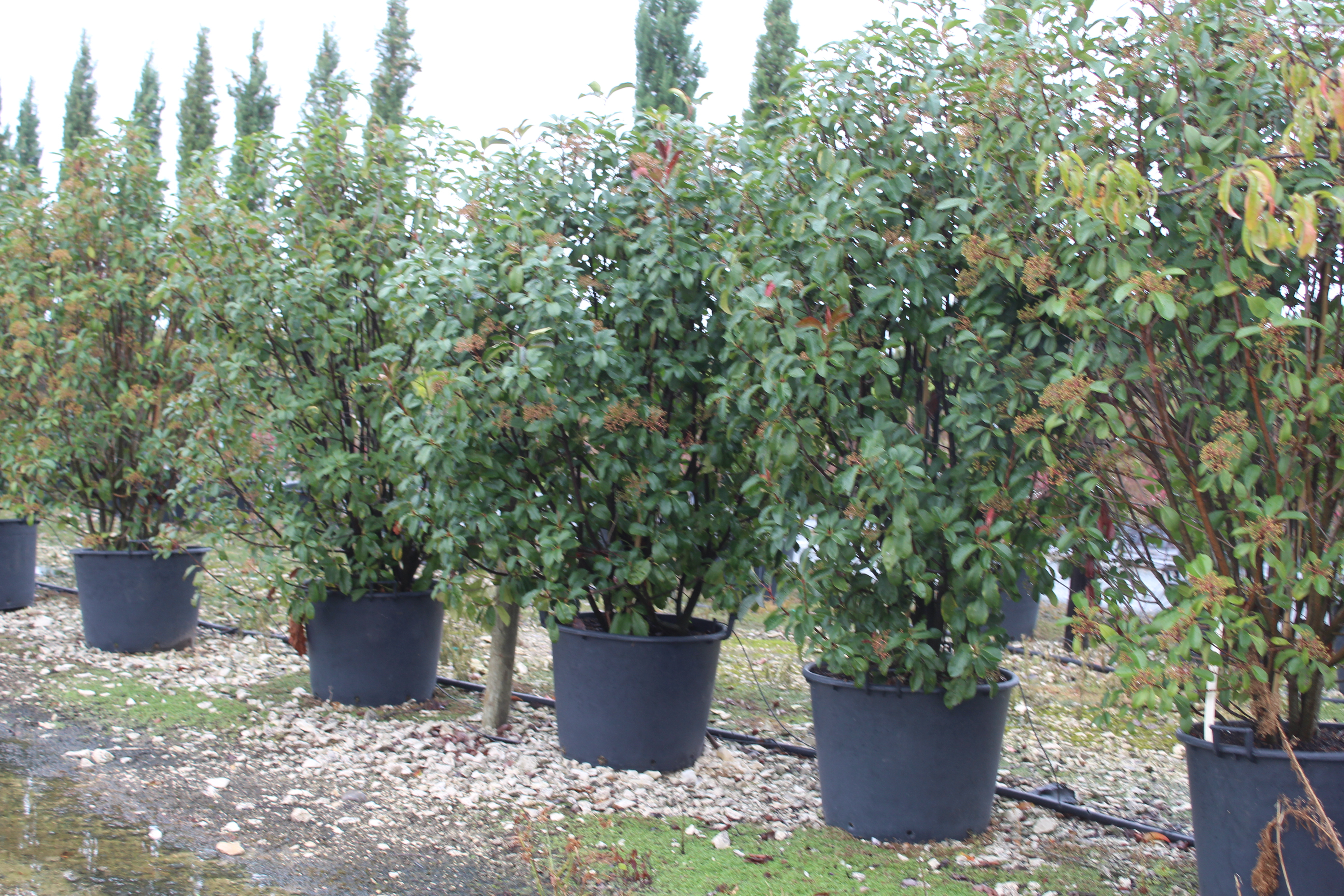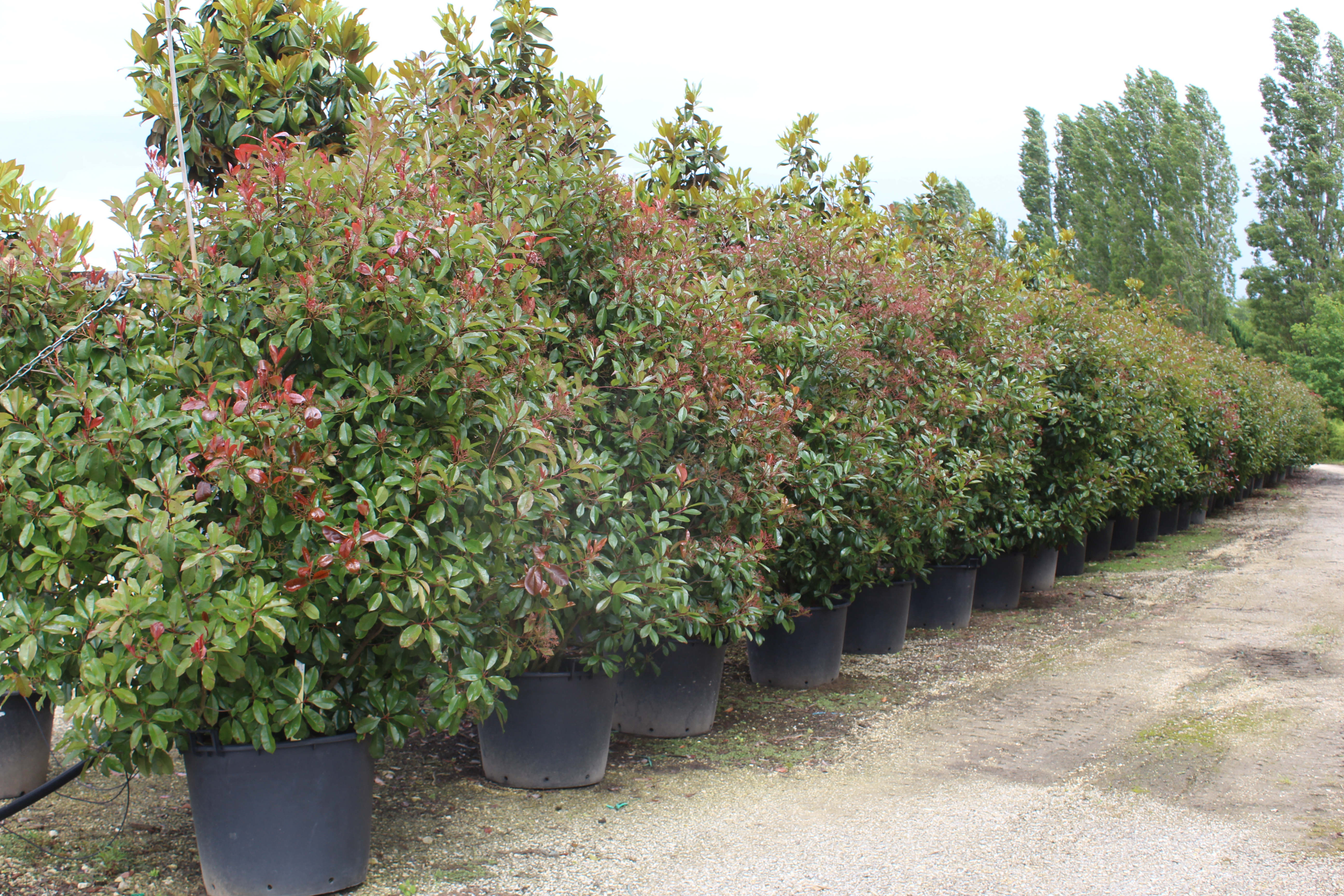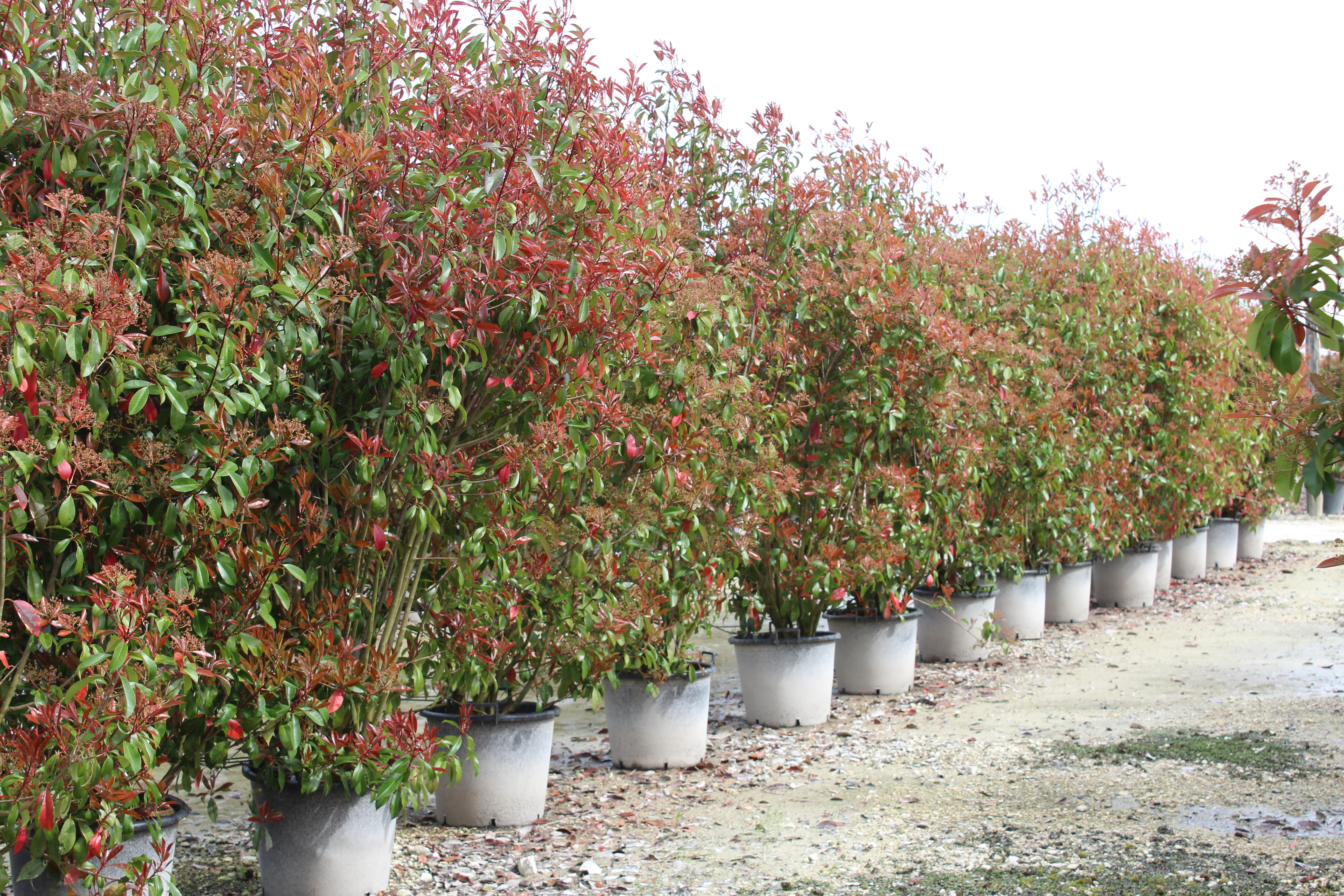 Photinia x fraseri ‘Red Robin’ est un arbuste persistant très utilisé en haie pour former un écran végétal dense et coloré ; pour découvrir d’autres variétés proches, consultez la catégorie Photinia.