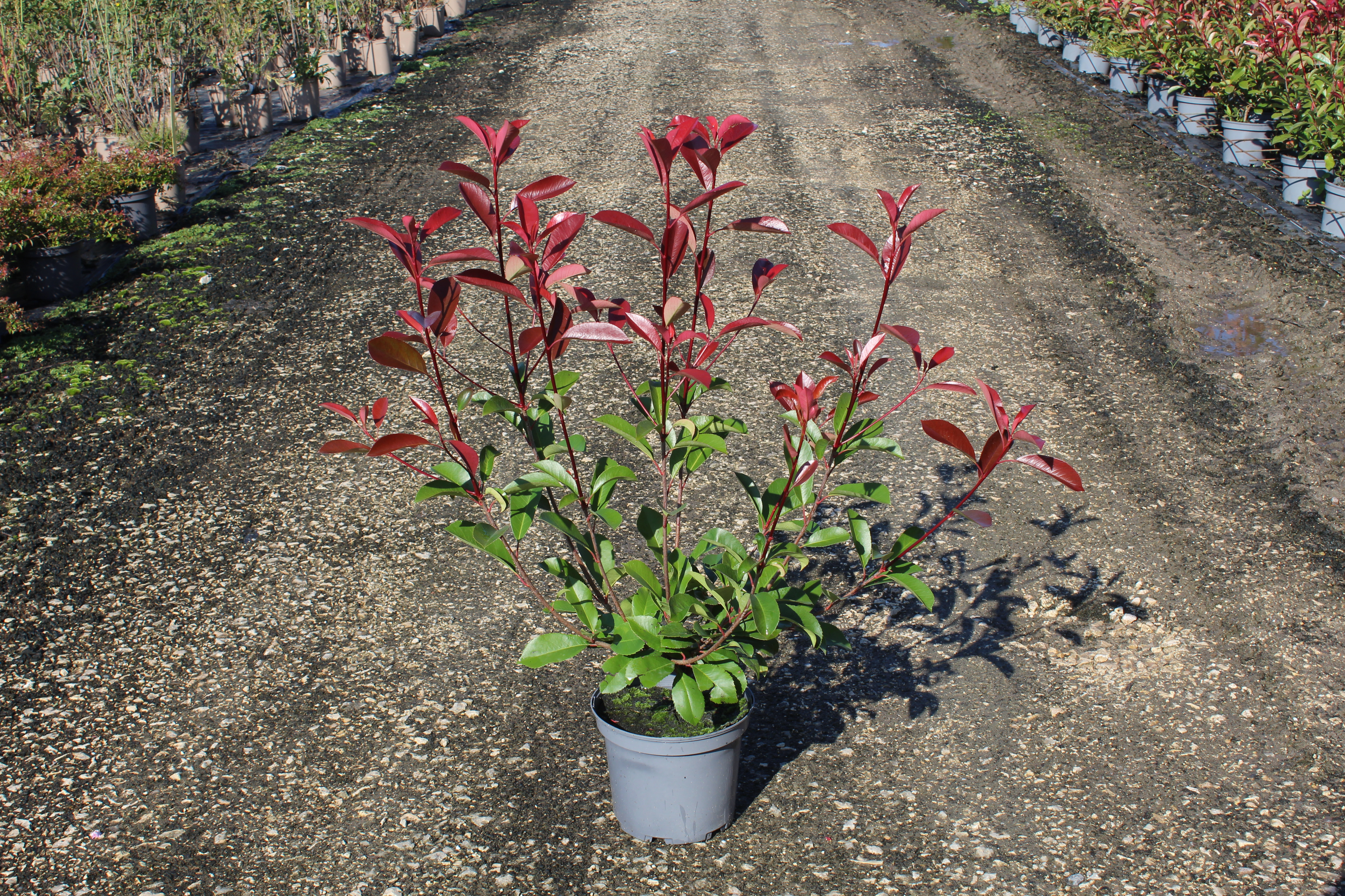 Photinia 'Red Robin' est un arbuste ornemental incontournable, apprécié pour son feuillage spectaculaire qui passe du rouge éclatant au vert brillant. Parfait pour créer des haies colorées et densément feuillées, il est également résistant et facile d'entretien. Cette plante s'épanouit en pleine lumière ou à mi-ombre et nécessite un arrosage modéré. Sa rusticité jusqu'à -15°C en fait un choix idéal pour embellir votre jardin tout au long de l'année.