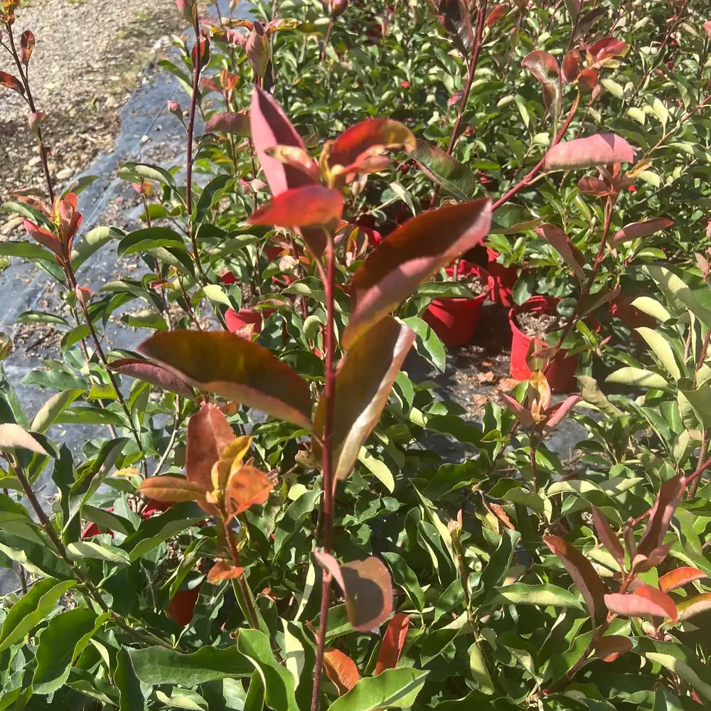 Le Photinia 'Red select' est une plante à feuillage persistant qui est particulièrement appréciée pour son esthétique luxuriante et sa capacité à embellir les jardins et espaces extérieurs. Cette variété de Photinia se distingue par ses nouvelles pousse de couleur rouge vif, qui apportent une touche de dynamisme et de couleur à tout aménagement paysager. Les jeunes feuilles sont d’un rouge éclatant en printemps, s'assombrissant en un vert foncé au fur et à mesure qu'elles vieillissent. Cette caractéristique colorée fait du Photinia 'Red select' un choix de premier plan pour les jardiniers et paysagistes souhaitant ajouter de la couleur à leur décor.