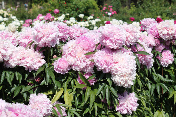 La Pivoine 'Sarah bernhardt rose argente' s’intègre merveilleusement bien dans divers types de massifs et de jardins. Elle peut être associée à d'autres vivaces et plantes annuelles pour créer des compositions florales très colorées. Par exemple, elle se marie à merveille avec des iris, des delphiniums, ou encore des lupins, offrant ainsi un contraste de couleurs et de textures. Dans les jardins de style cottage, où le désordre est la règle, elle peut également être plantée avec des roses anciennes pour un effet romantique et champêtre. La Pivoine 'Sarah bernhardt rose argente' est toujours un point focal dans n'importe quel agencement floral grâce à sa beauté et à sa stature majestueuse.