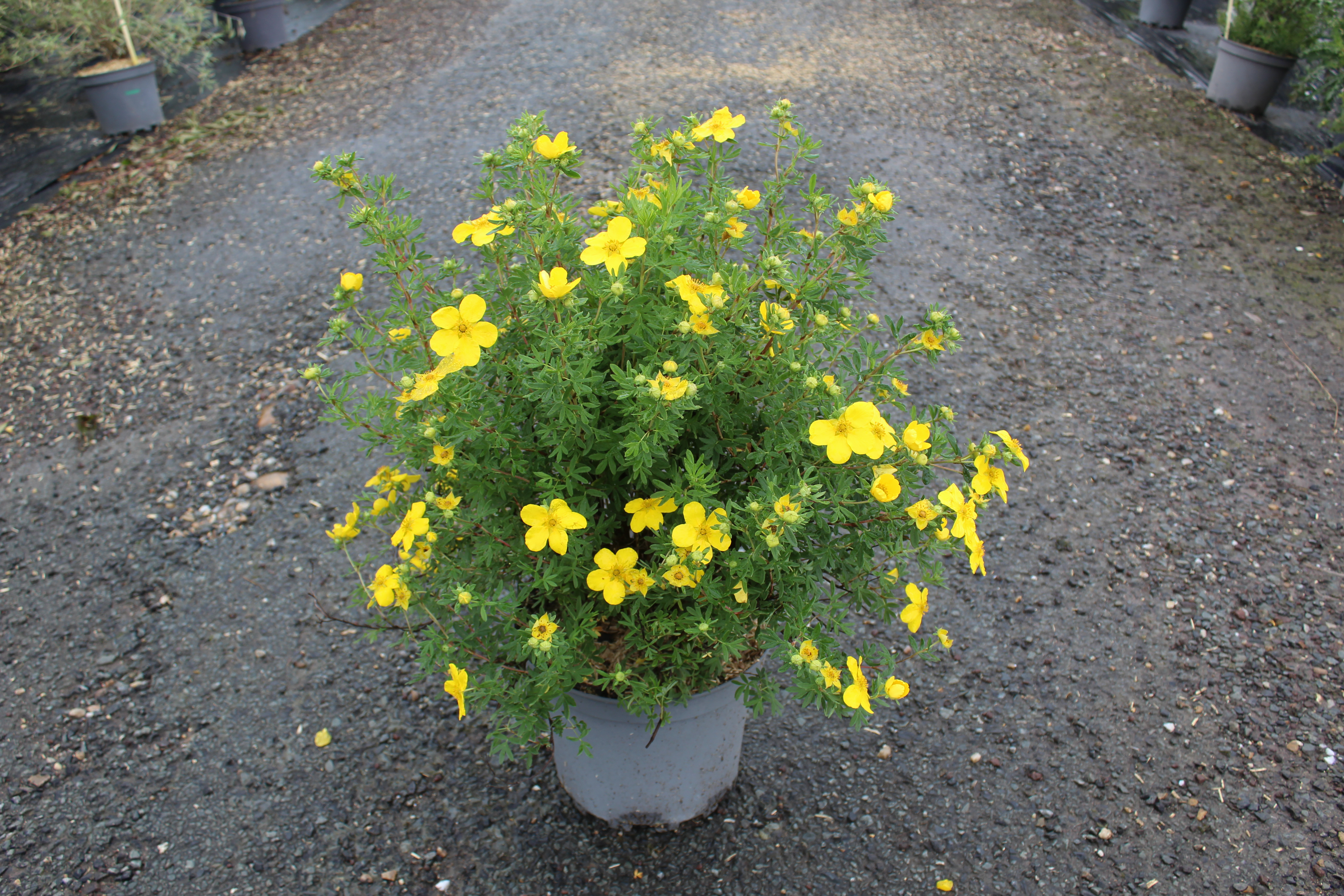 En pleine terre, il est important d’arroser modérément pendant les premières années pour établir un bon système racinaire. Une fois bien enracinée, la Potentille 'Goldfinger' tolère la sécheresse, mais un arrosage supplémentaire est conseillé pendant les périodes chaudes. Pour les pots, surveillez un substrat qui sèche vite et arrosez plus fréquemment pour éviter un stress hydrique.