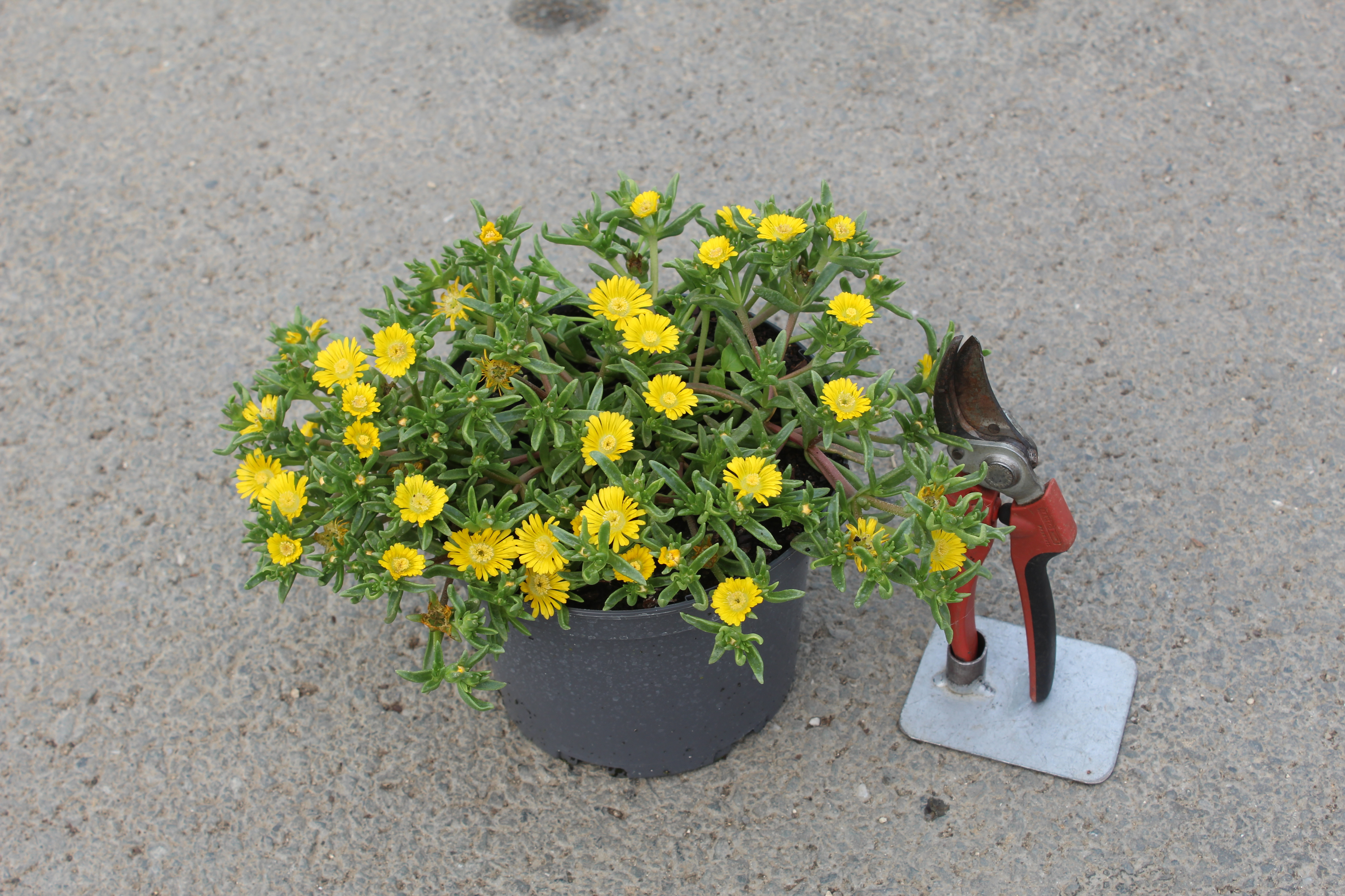L'entretien est quasiment inexistant. Le Delosperma s'auto-nettoie très bien. Si la plante s'étale un peu trop sur une allée ou déborde de son pot, vous pouvez simplement raccourcir les tiges au sécateur à la fin de l'été ou au début du printemps.
