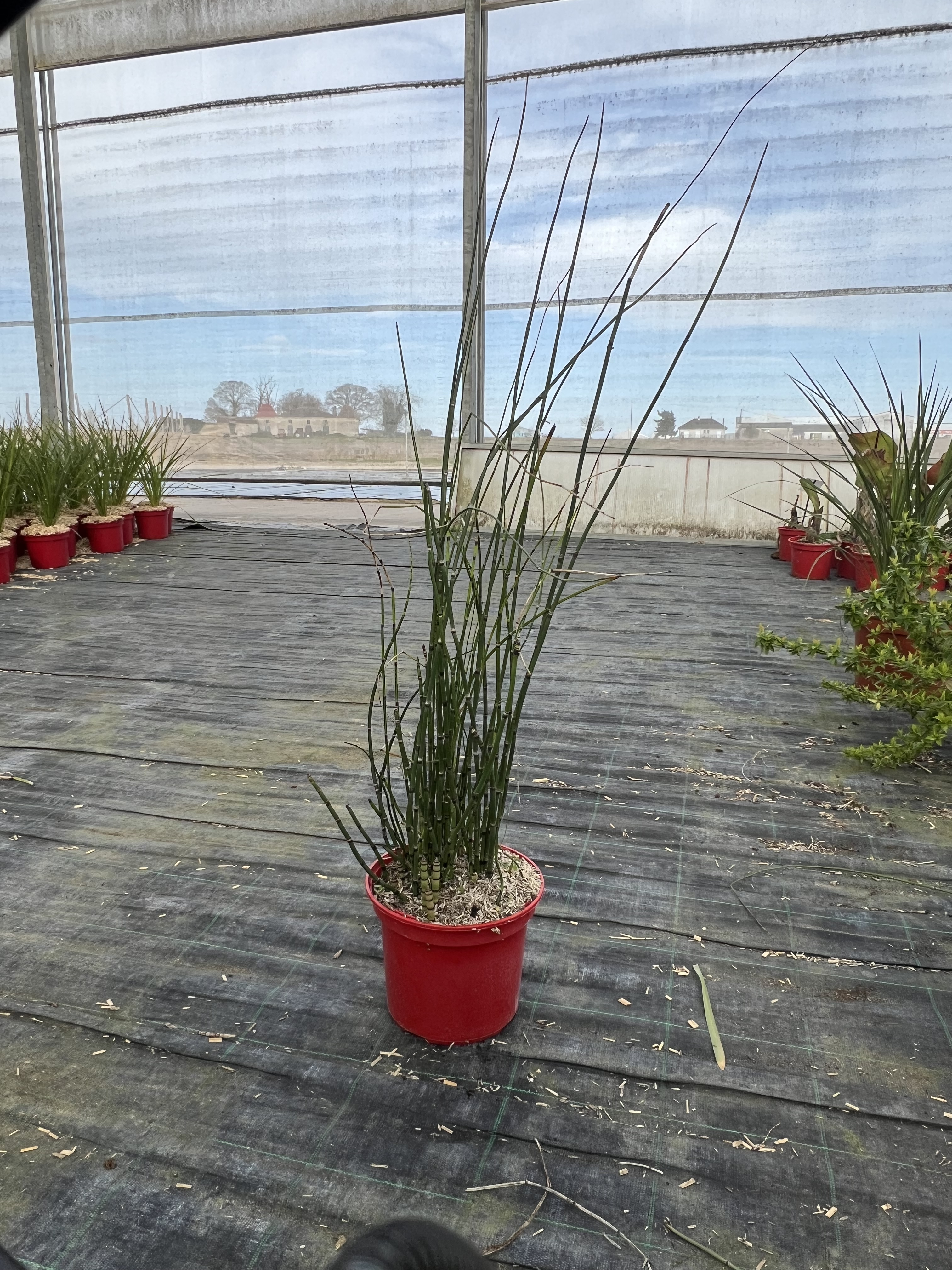 La Prêle (*Equisetum hyemale*) est une plante vivace marécageuse au feuillage élégant et graphique. Ses tiges élancées, d'un vert profond, apportent une ambiance unique et rafraîchissante à votre jardin. Facile d'entretien et rustique, cette plante s'adapte à différentes conditions, idéale pour les jardins d'ombre et les milieux aquatiques. Voir tous nos Prele Equisetum