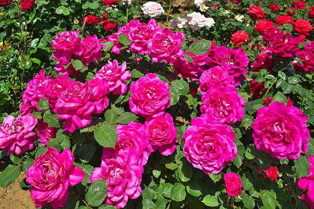 Il existe de nombreuses autres variétés de rosiers qui partagent certaines caractéristiques avec le Rosier 'Bernadette Lafont'. Des variétés comme le Rosier 'Pierre de Ronsard' ou le Rosier 'Climbing Iceberg' sont également prisées pour leur abondante floraison et leur parfum. Ces rosiers sont souvent utilisés en association pour créer des compositions florales harmonieuses dans les jardins. En s'inspirant de la palette de couleurs et des formes, on peut imaginer des arrangements où le Rosier 'Bernadette Lafont' pourrait briller aux côtés d'autres spécimens, créant ainsi des scènes luxuriantes et colorées.