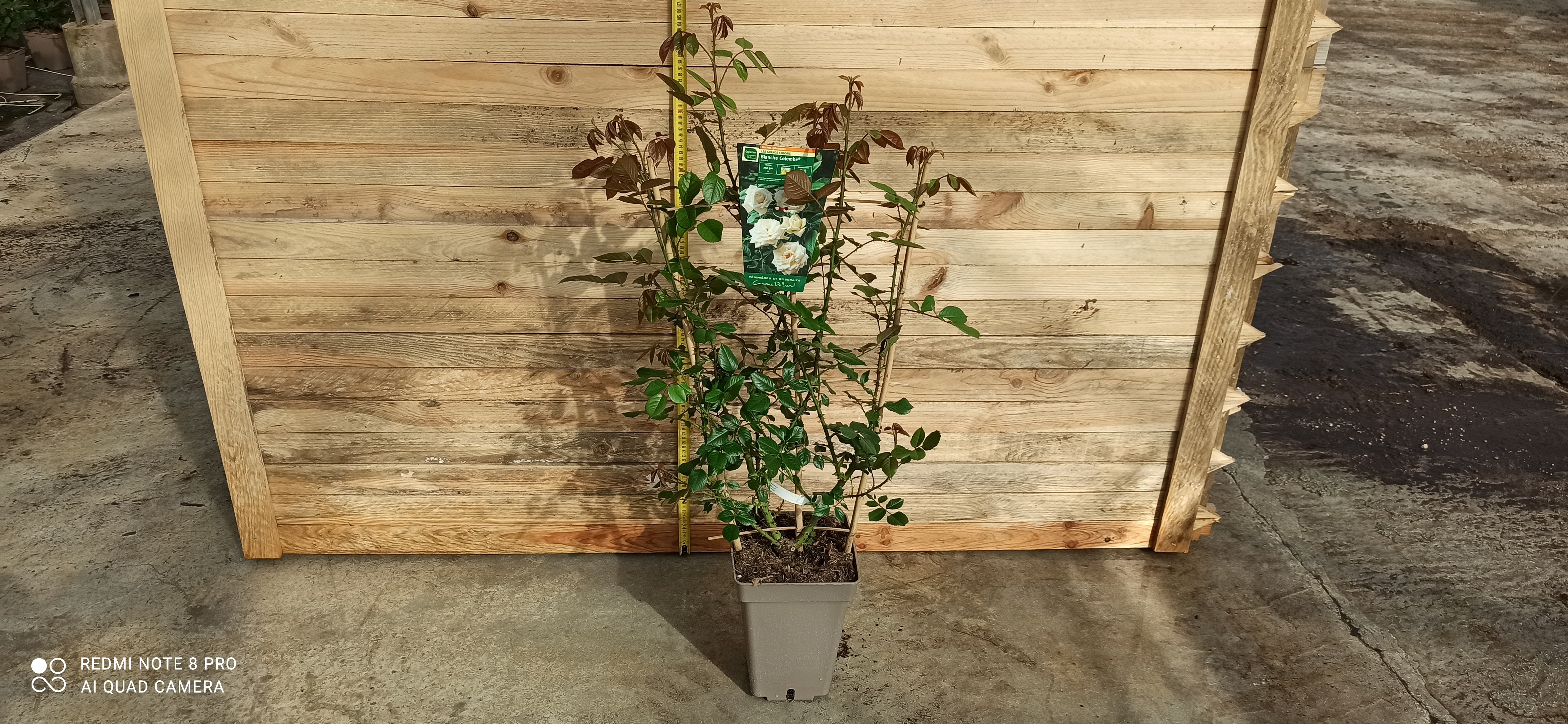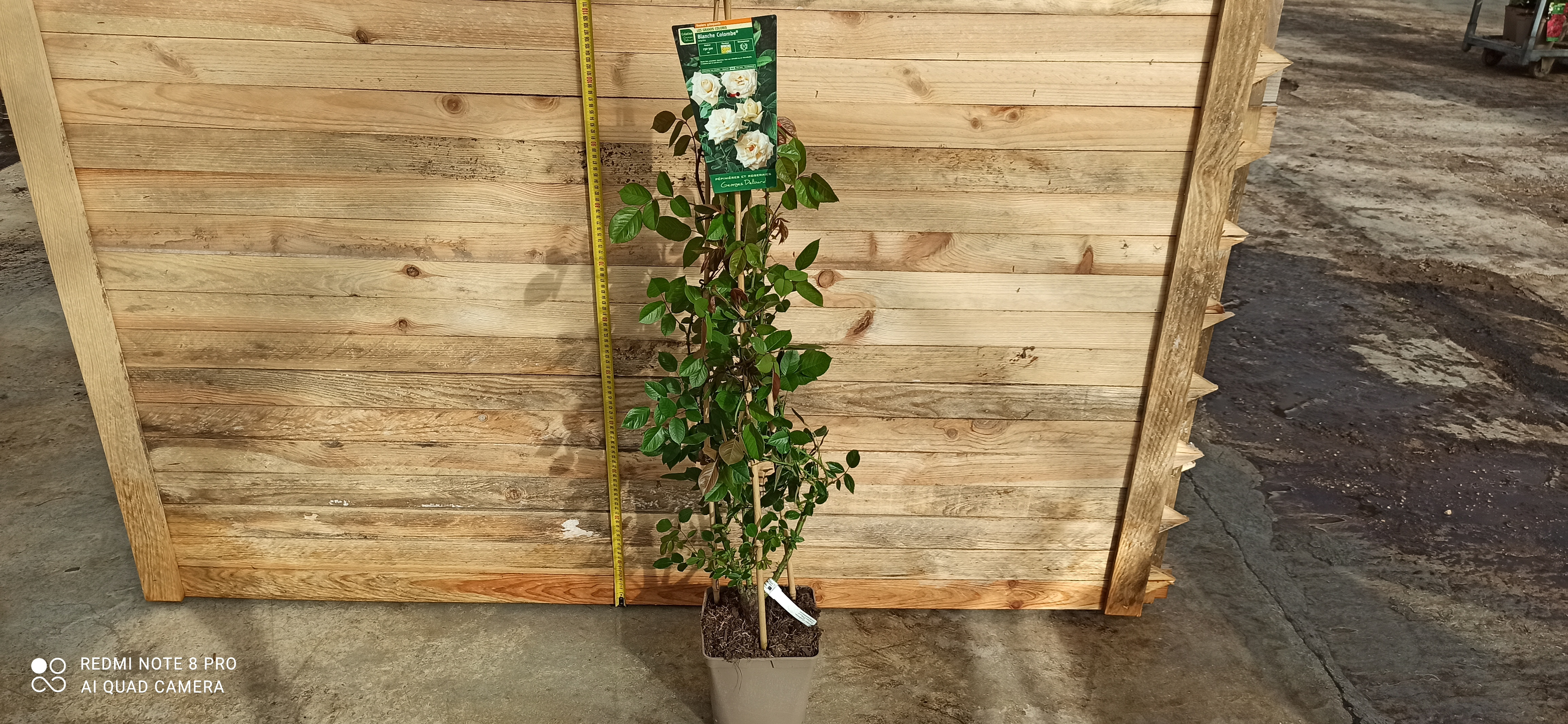 Le Rosier 'Blanche colombe' est un rosier buisson qui peut atteindre une hauteur de 80 à 120 cm, idéal pour former des massifs fleuris ou pour embellir les bordures de jardin. Son feuillage dense est d'un vert éclatant, ce qui contraste magnifiquement avec les fleurs immaculées. La plante est robuste, résistant aux maladies, ce qui en fait un choix parfait pour les jardiniers de tous niveaux. Les boutons floraux, qui s'ouvrent progressivement pour révéler des fleurs épanouies, sont également très esthétiques.