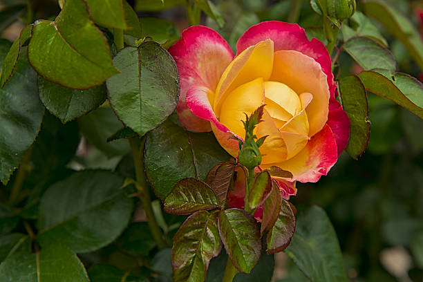 L'entretien du Rosier 'Elvis - pacific sunset ' est relativement simple. Un arrosage régulier est nécessaire, surtout pendant les périodes sèches, pour maintenir le sol humide sans toutefois le rendre détrempé. Il est également conseillé de pailler autour de la base de la plante pour conserver l'humidité et limiter la croissance des mauvaises herbes. La taille est une étape cruciale pour favoriser la santé et la vigueur de la plante. Il est recommandé de tailler le rosier au début du printemps, en supprimant les branches mortes ou endommagées et en raccourcissant les tiges pour encourager une nouvelle poussée.