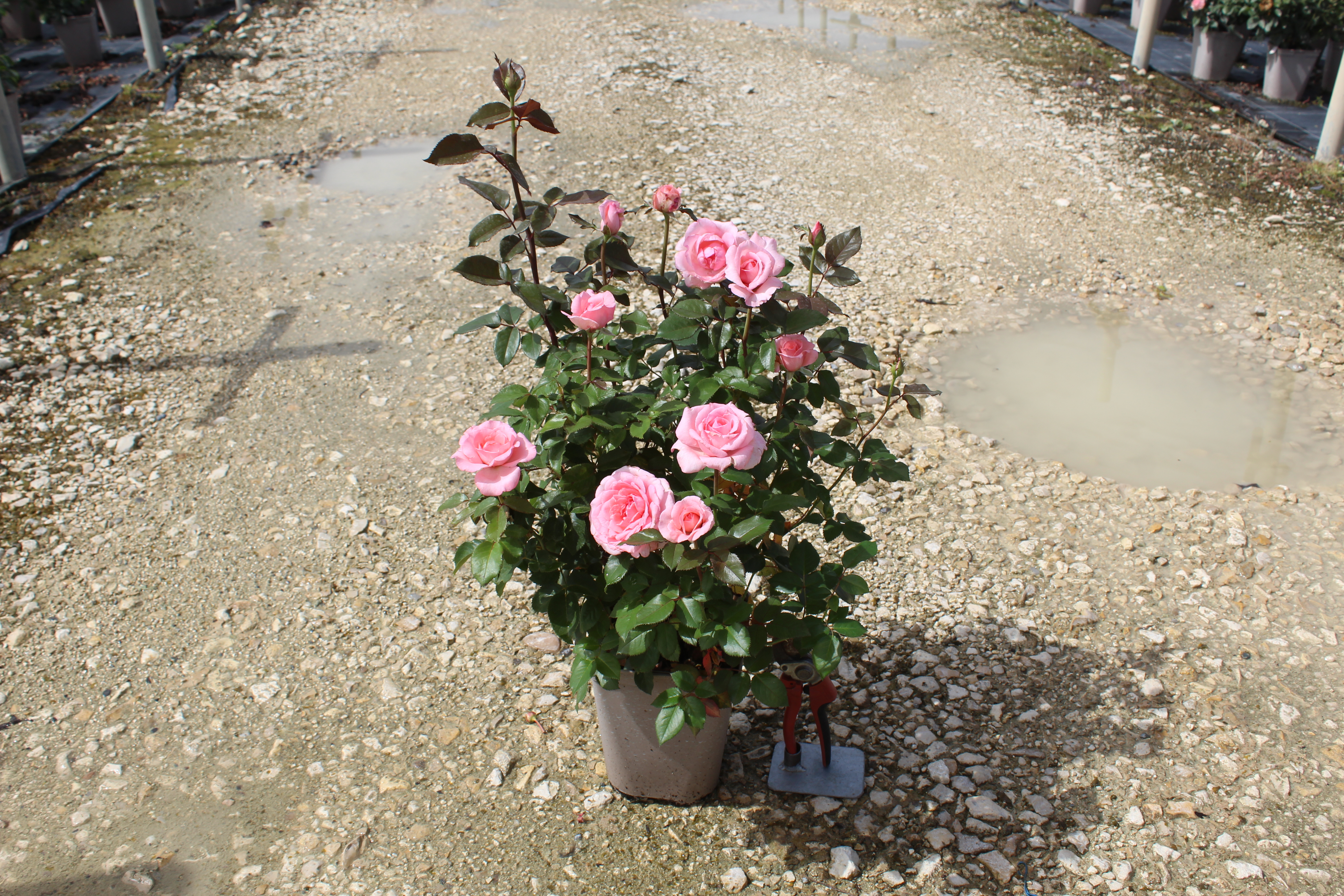 Cultiver un Rosier 'Fragonard' requiert certaines attentions afin d'assurer sa floraison et sa santé. Il est recommandé de le planter dans un sol bien drainé, riche en matière organique. Un emplacement ensoleillé est idéal, car le rosier a besoin de plusieurs heures de lumière directe chaque jour pour s'épanouir pleinement. L'arrosage doit être régulier, surtout durant les périodes sèches, mais il est important d'éviter l'excès d'eau qui pourrait entraîner des maladies racinaires. Pour favoriser une floraison optimale, un apport en engrais spécial rosier peut être envisagé, de préférence au printemps, lorsque la plante commence à sortir de sa dormance.