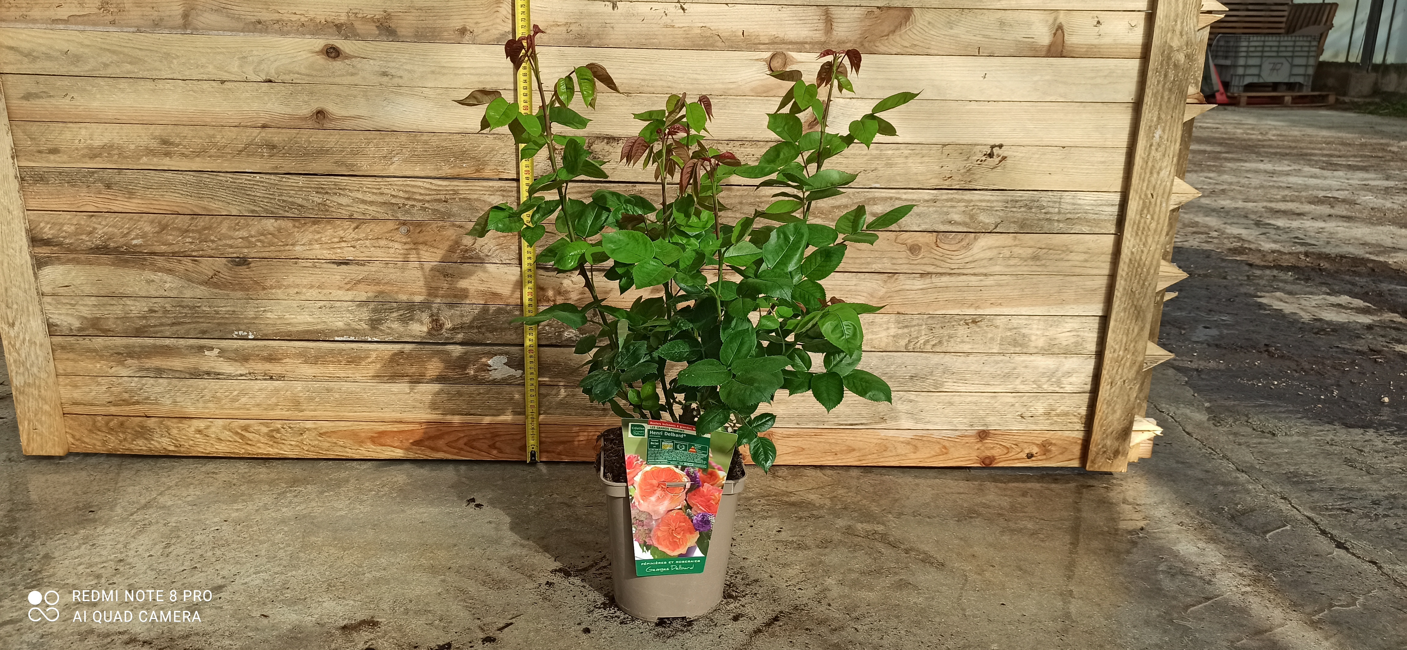 Le Rosier 'Henri delbard ' se distingue par sa floraison spectaculaire. Ses fleurs, d'un rose doux, sont souvent décrites comme cuivrées et émettent un parfum subtil qui attire les abeilles et autres pollinisateurs. Ce rosier a la particularité d’avoir des fleurs en coupe, qui s'épanouissent en une multitude de pétales, créant ainsi une allure luxuriante. La hauteur du Rosier 'Henri delbard ' peut atteindre entre 80 cm et 1,20 m, ce qui en fait un choix idéal pour donner de la hauteur à vos compositions florales.