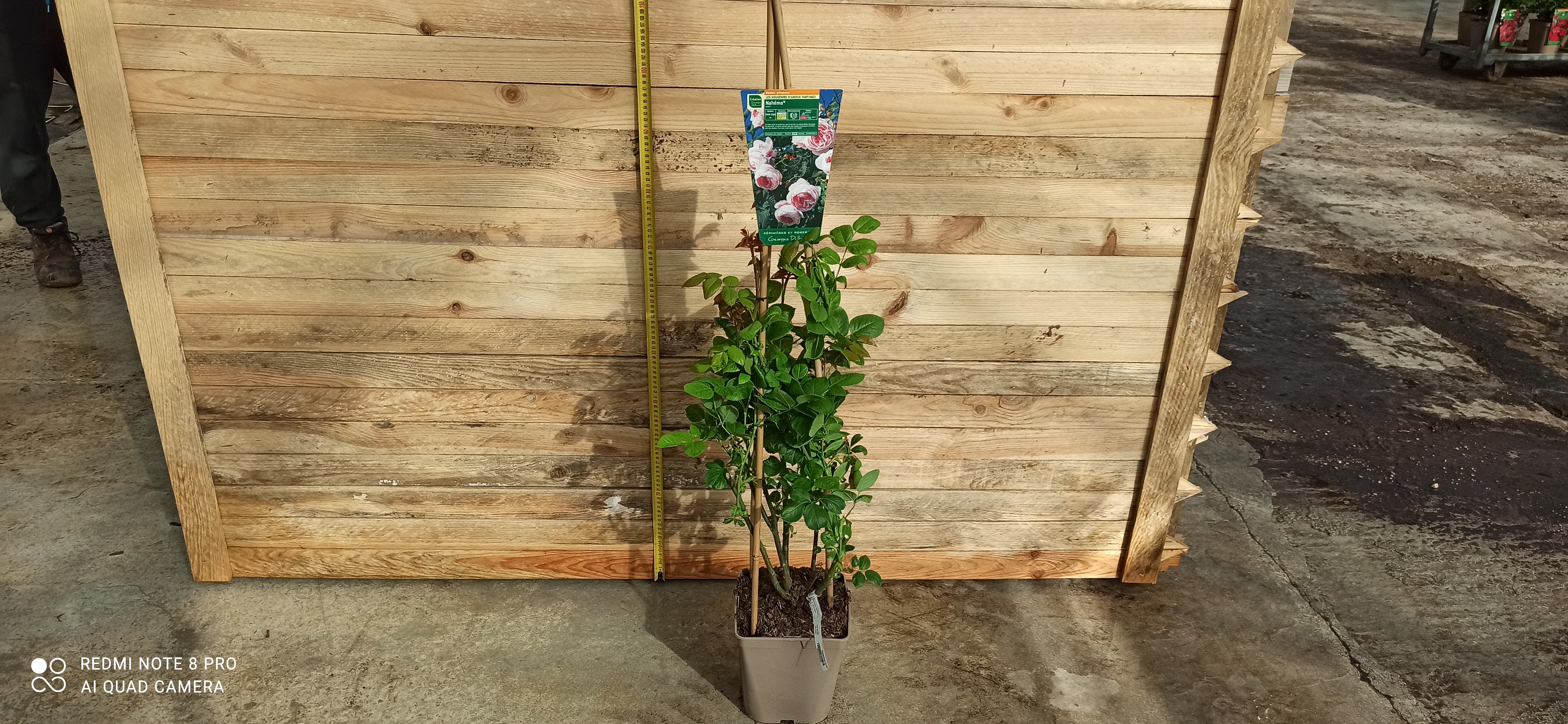 C'est un petit grimpant (ou grand arbuste) au charme fou. Ses fleurs, d'un rose "cuisse de nymphe" très pâle, sont globuleuses, pleines et comptent une multitude de pétales, rappelant les roses anciennes. Retrouvez ce style romantique dans notre collection complète de rosiers grimpants parfumés.