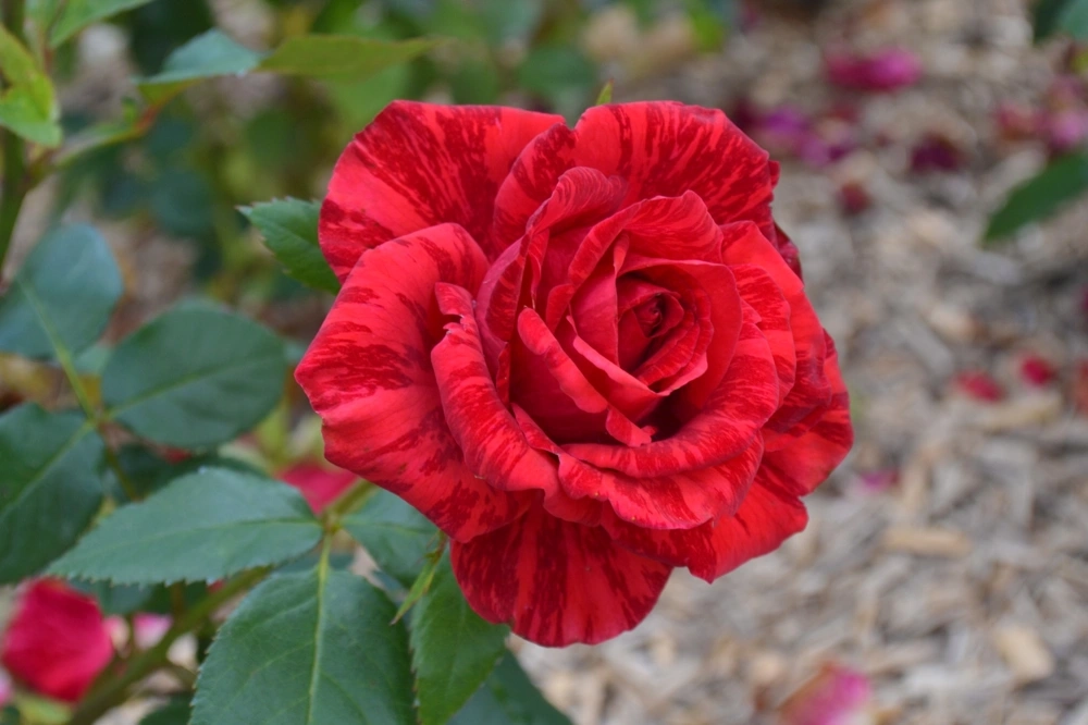 L'entretien du Rosier 'Red intuition ' est relativement simple, mais il nécessite quelques attentions pour assurer sa santé et sa floraison continue. La taille est une étape cruciale, surtout au printemps, pour éliminer les branches mortes ou malades et stimuler la vigueur de la plante. Il est conseillé de tailler les tiges à un angle de 45 degrés, juste au-dessus d'un bourgeon pour encourager une nouvelle croissance. Les rosier doivent également être nourris avec un engrais approprié pour rosiers, ce qui permet d'apporter les nutriments nécessaires à leur épanouissement. L'application de compost au printemps et d'engrais durant la période de floraison peut également s'avérer très bénéfique.