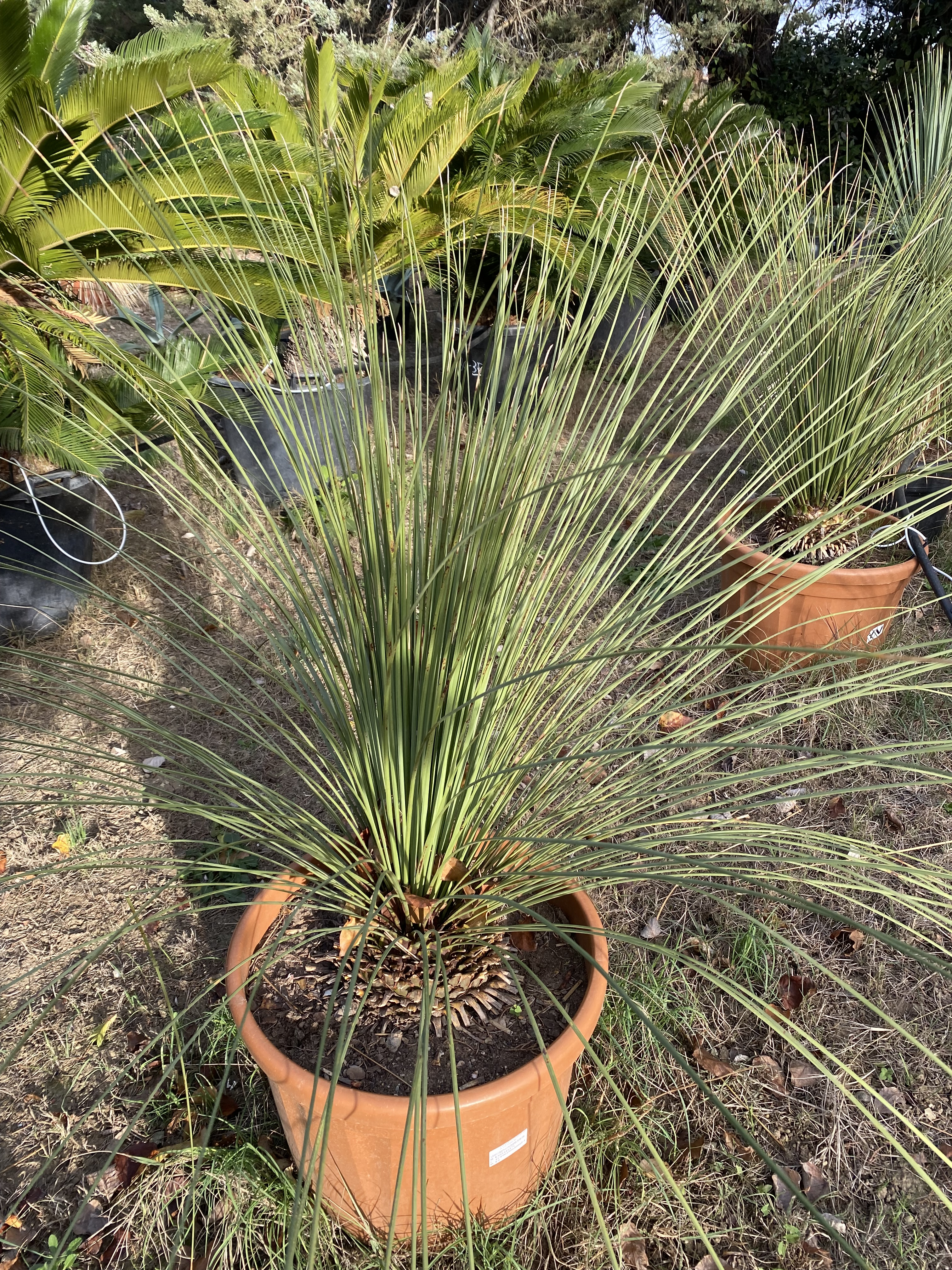 - Feuilles : très longues, fines, plutôt souples, à bords généralement peu agressifs (comparé aux dasylirions à bords dentés)