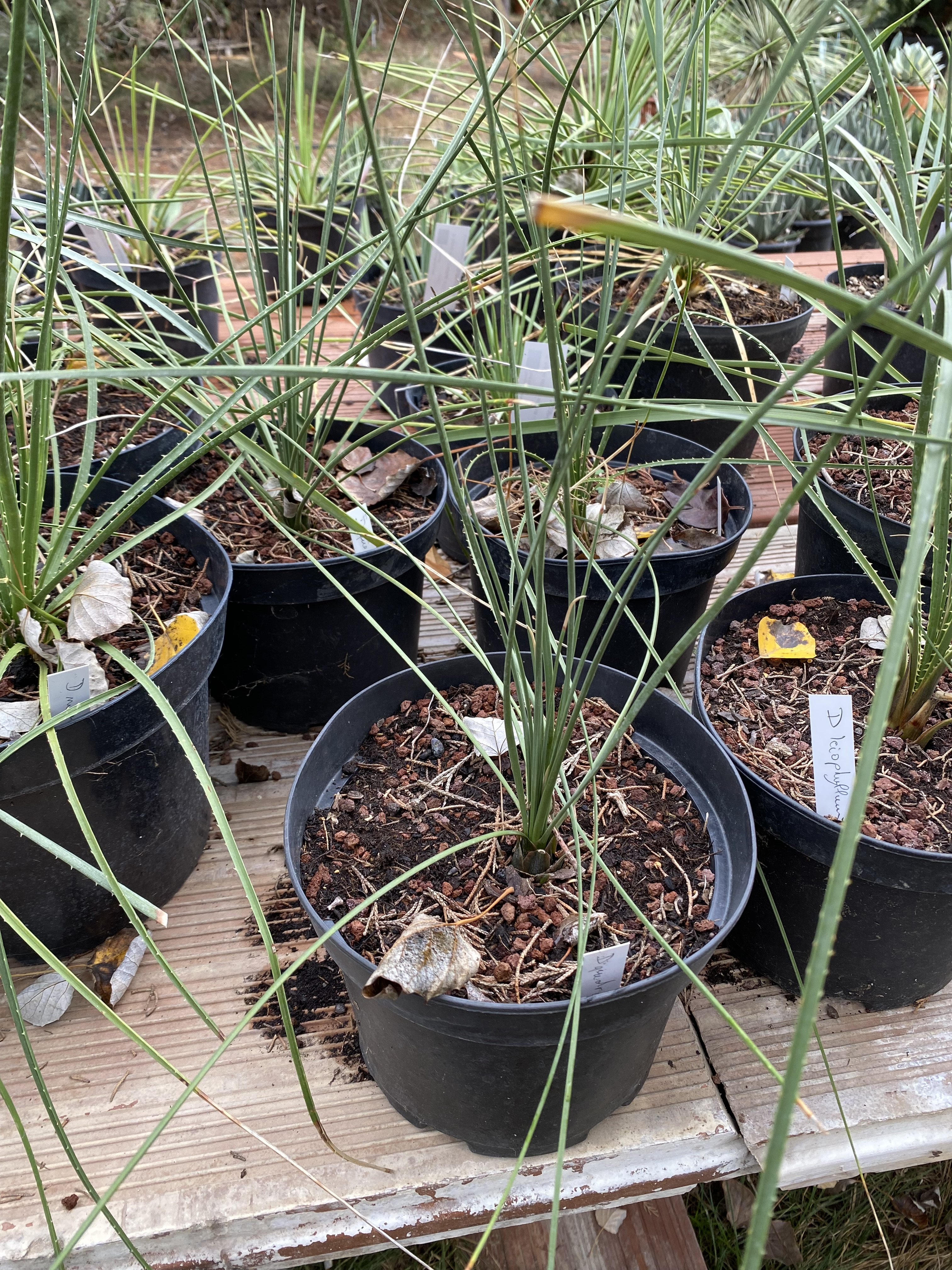 Le Sotol filiforme (Dasylirion quadrangulatum) est une superbe plante graphique proche des agaves et des yuccas, idéale pour créer une ambiance de jardin sec ou exotique. Avec sa rosette parfaite de feuilles très fines, bleu-vert à gris-bleuté, elle forme au fil du temps une véritable « boule » élégante posée sur un tronc, spectaculaire en pot comme en pleine terre. Cette espèce s’inscrit naturellement parmi les plantes de climat sec et jardins arides, où sa silhouette architecturale fait merveille.