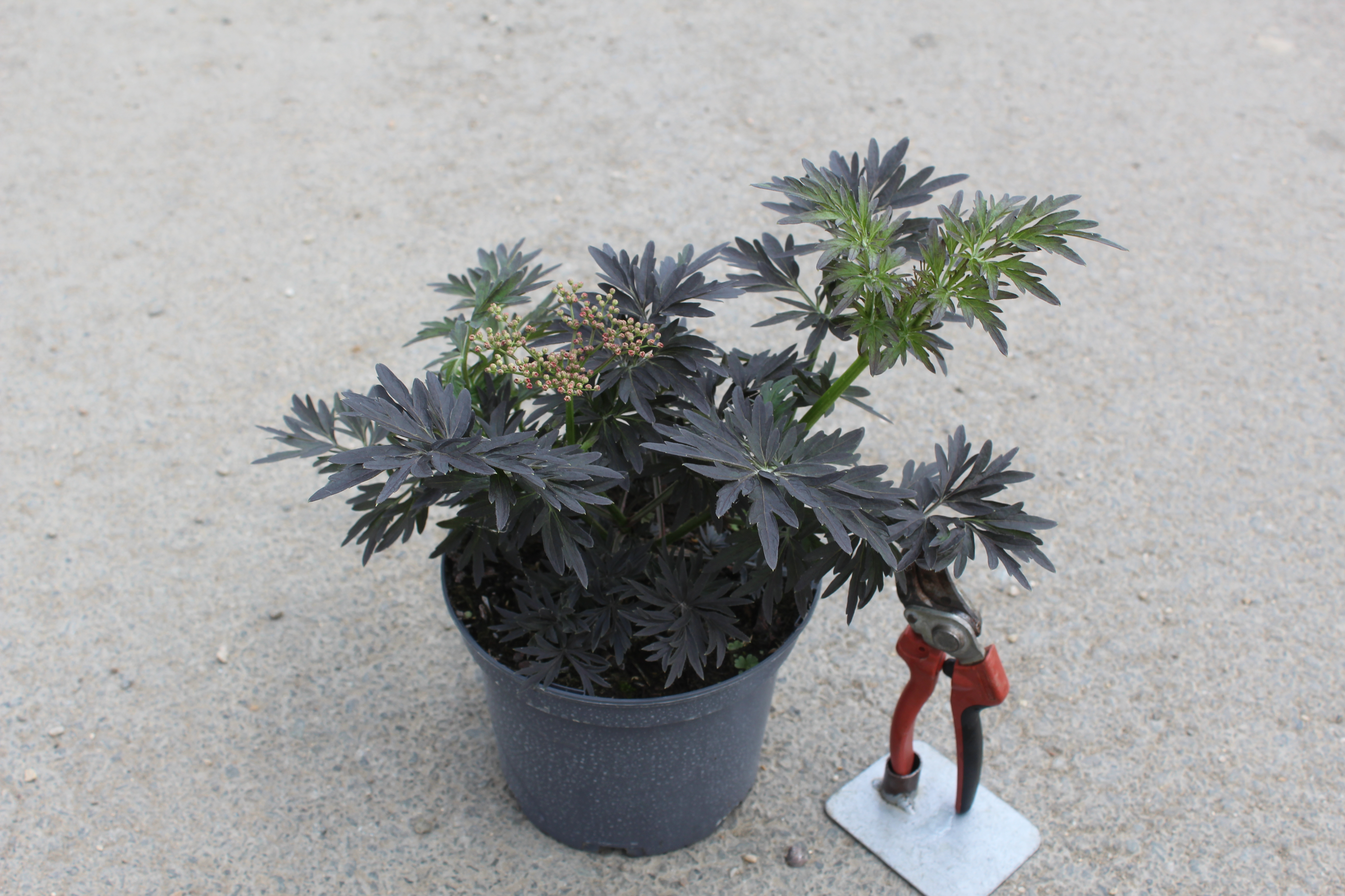 Le Sureau noir 'Laced Up' (Sambucus nigra) est une innovation horticole spectaculaire, idéale pour structurer les jardins urbains et les espaces restreints. Cet arbuste se distingue par un port unique, colonnaire et très étroit, combiné à un feuillage finement découpé d'un pourpre profond, presque noir, intense et brillant.