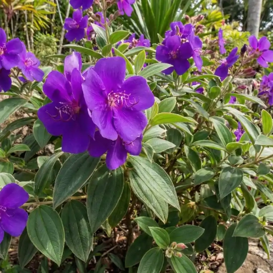 La Tibouchine, aussi appelée Fleur d’Urville ou Sœur des bois, est un arbuste spectaculaire qui attire l’attention avec ses fleurs étoilées d’un violet intense. Originaire du Brésil, cette plante fait partie de la famille des Melastomataceae et trouve sa place dans les jardins d’ornement, ajoutant une touche exotique et colorée à votre espace. Voir tous nos Tibouchina