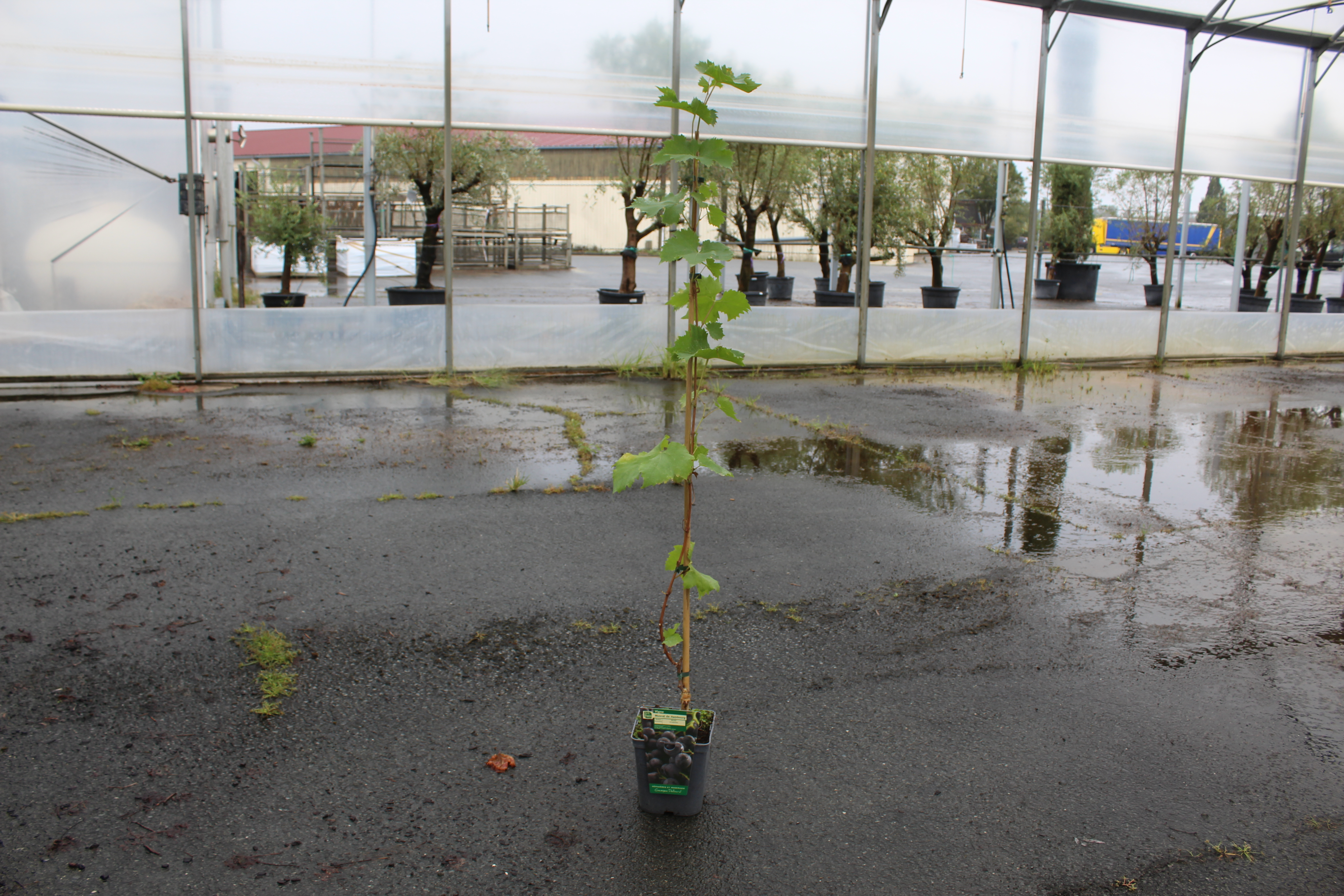 La culture de la Vigne 'De table muscat de hambourg' nécessite un emplacement ensoleillé, avec au moins six heures de soleil direct par jour pour favoriser une bonne maturation des fruits. Cette plante préfère les sols bien drainés mais riches en matière organique. Un mélange de terreau et de compost peut grandement améliorer sa croissance. L'ajout d'engrais organique au printemps stimule le développement des grappes.Les jeunes plants doivent être arrosés régulièrement, surtout pendant les périodes de sécheresse, afin de maintenir un sol légèrement humide. Cependant, il est crucial de ne pas noyer les racines, car un excès d'eau peut entraîner des maladies fongiques. Une fois bien établie, la Vigne 'De table muscat de hambourg' devient plus résistante à la sécheresse.