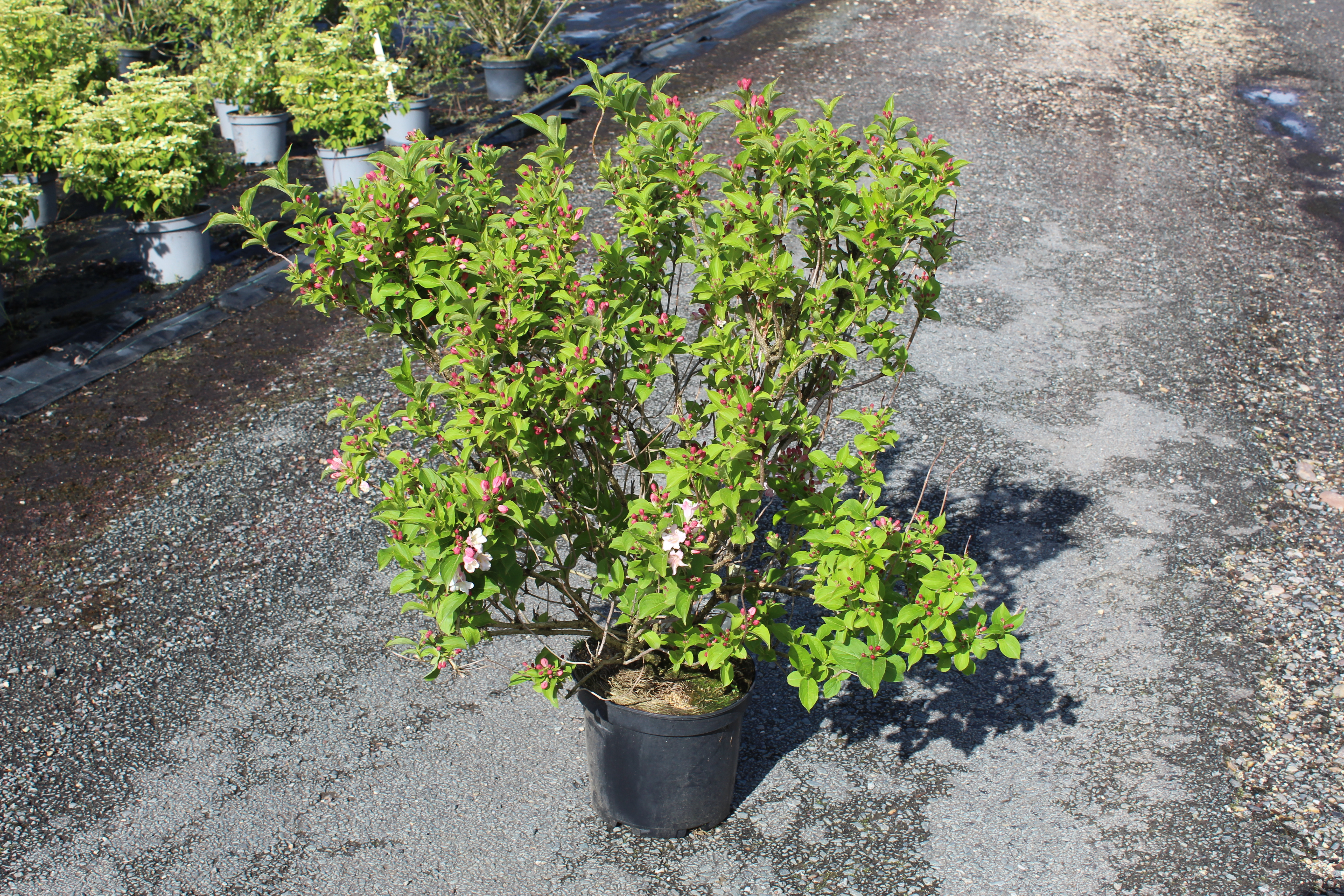 Le Weigelia 'Stelzneri rose' est un arbuste à fleurs qui se distingue par sa beauté remarquable et sa floraison généreuse. Ce cultivar de la famille des Caprifoliacées est apprécié pour ses fleurs en forme de trompette qui apparaissent au printemps et en été. Les fleurs, de couleur rose soutenu, attirent les pollinisateurs tels que les abeilles et les papillons, ce qui en fait un choix idéal pour les jardins écologiques. L’arbuste peut atteindre une hauteur de 1 à 1,5 mètre, ce qui en fait un parfait planteau d’accompagnement dans les massifs floraux ou les haies basses.