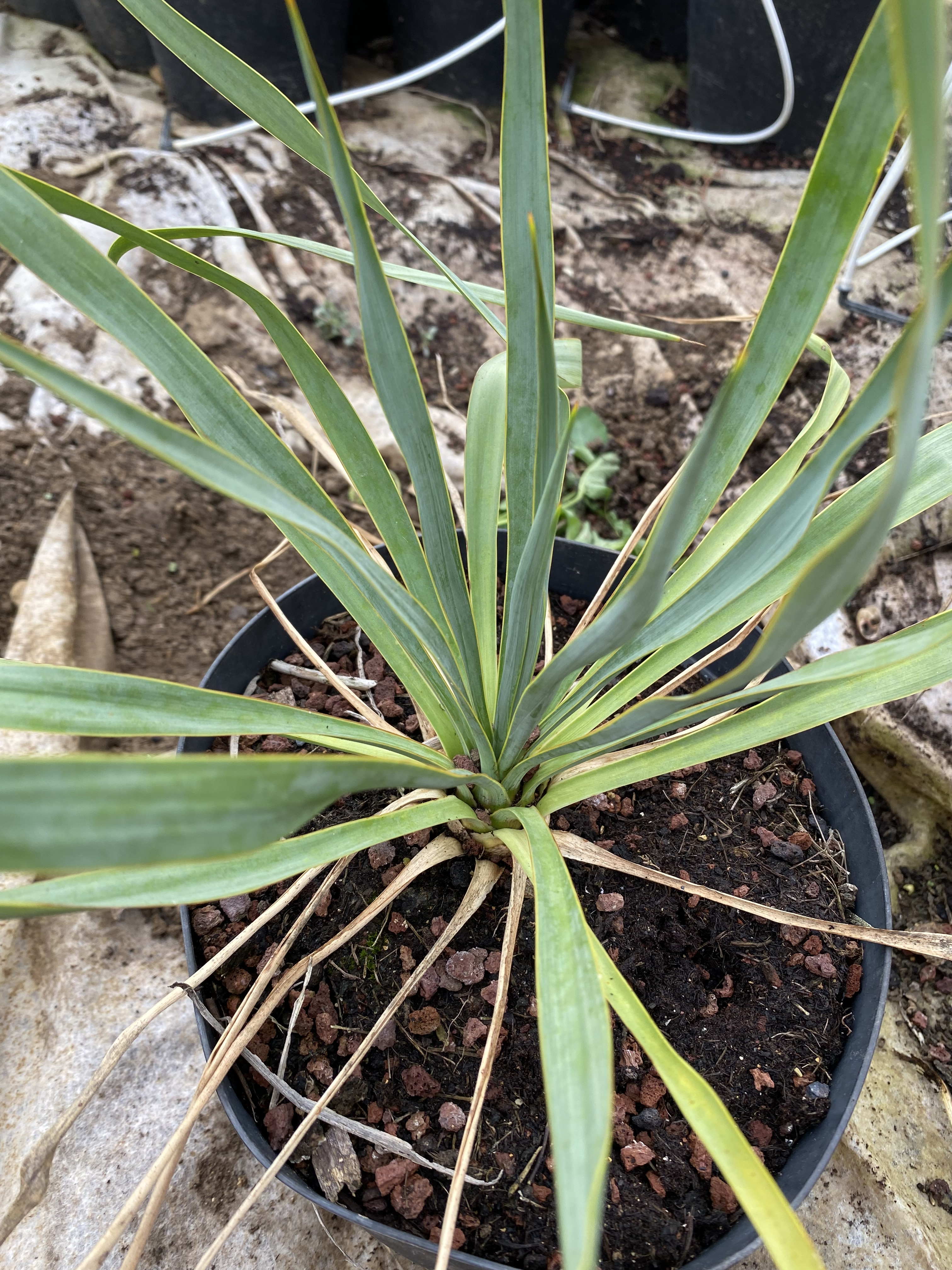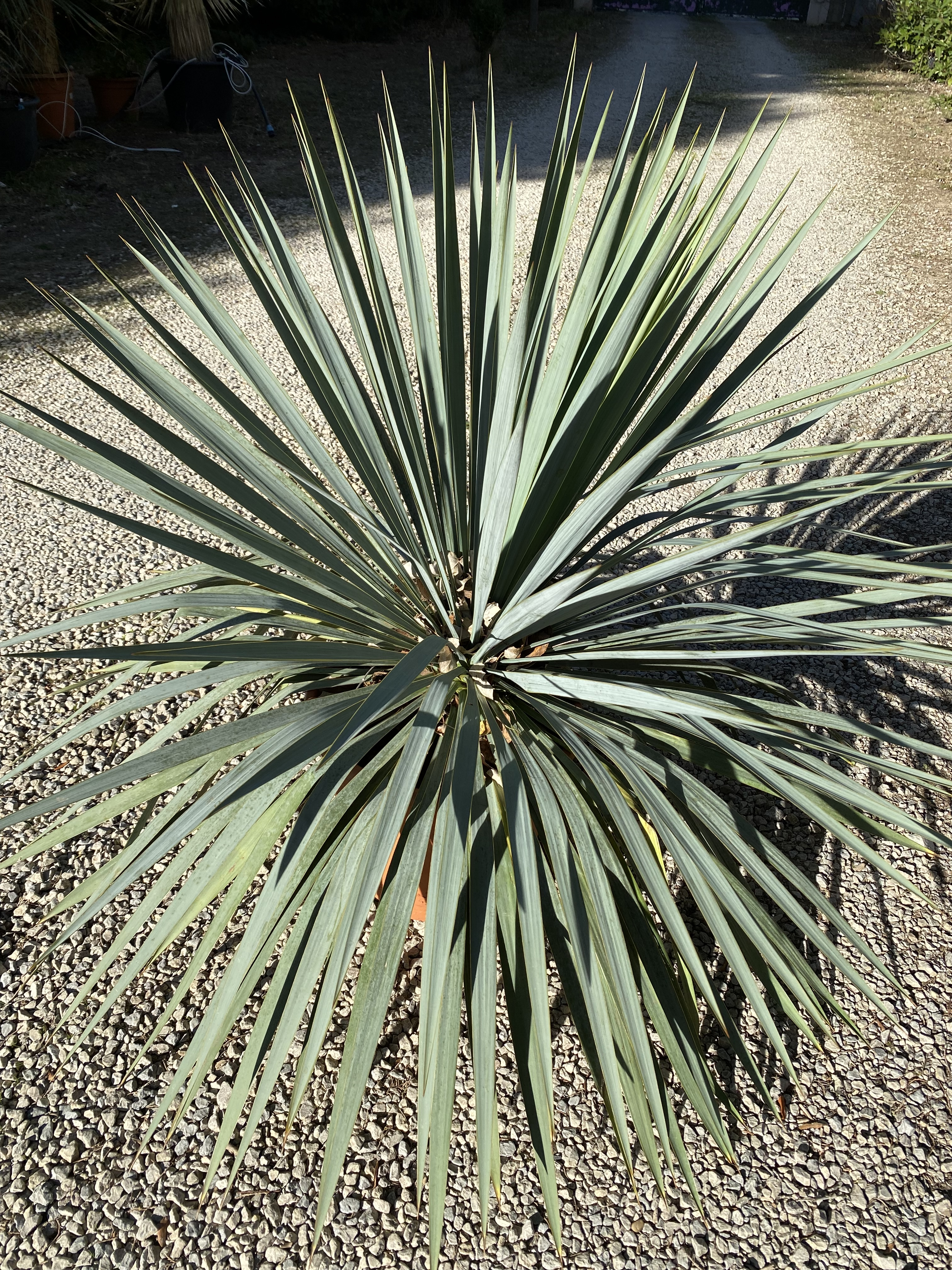 Il forme une touffe de feuilles persistantes en rosette, au feuillage rigide, en longues lanières dressées puis arquées qui structurent fortement les massifs. La floraison se présente en hampes dressées portant des clochettes blanches, généralement en été, avec des variations selon les régions. Cette variété bénéficie d’une excellente rusticité pour un yucca, adaptée à la plupart des régions françaises, du moment que le sol reste bien drainé.