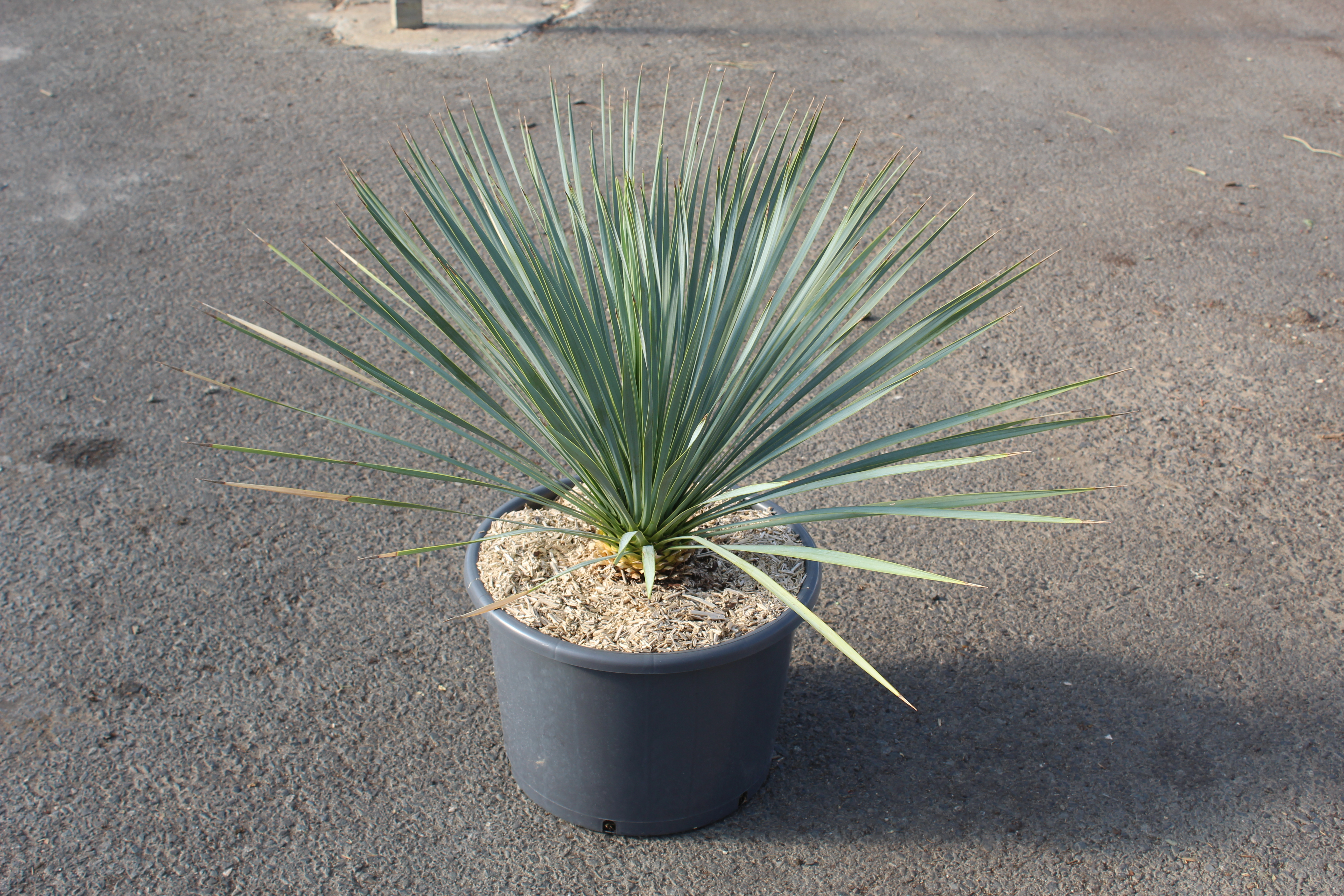 - Type : yucca arborescent (plante architecturale à tronc portant une rosette terminale)
