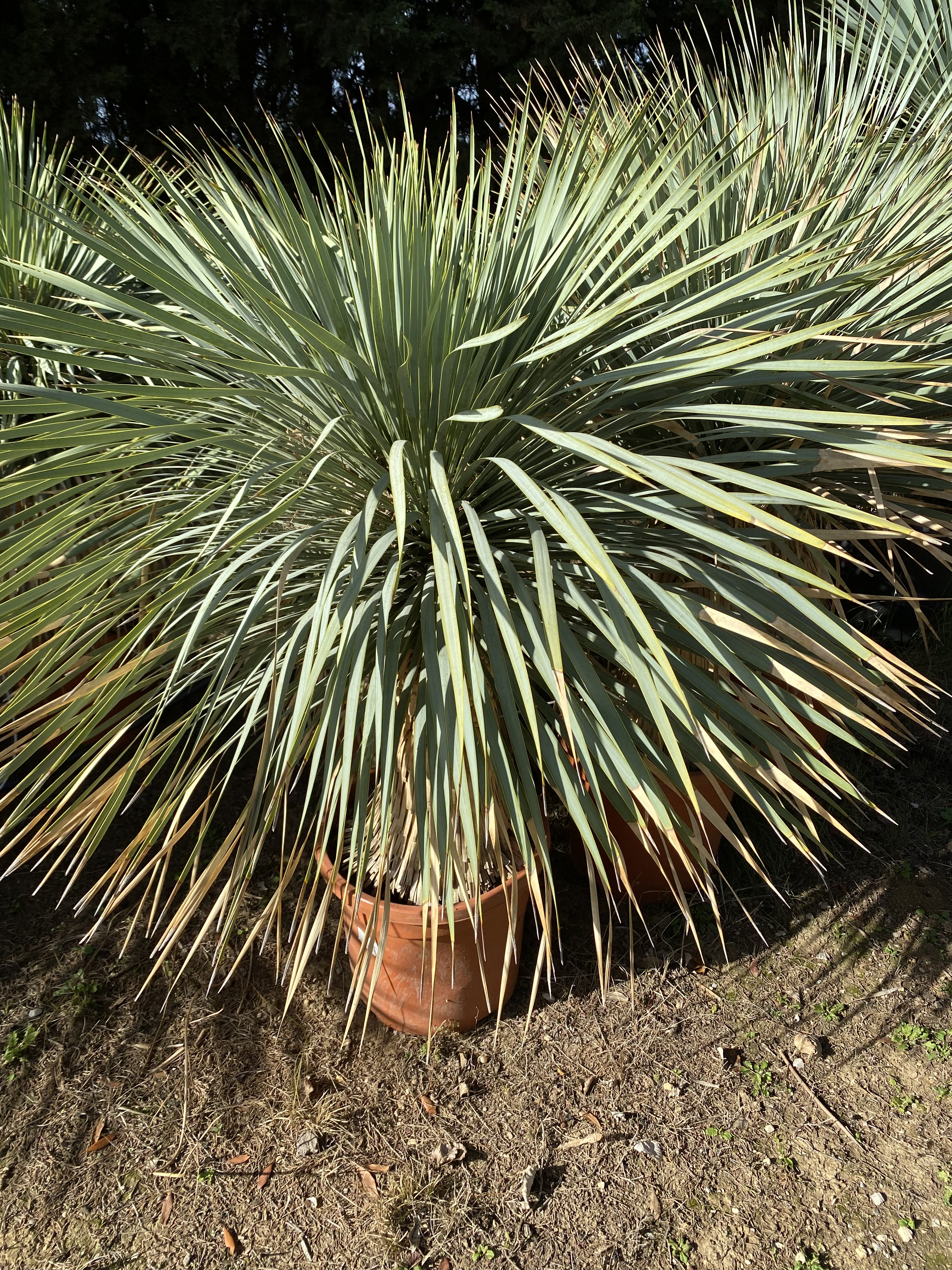 Yucca 'French Flag'. Il offre le même bleu intense avec une croissance deux fois plus rapide, mais avec des feuilles souples et totalement inoffensives.